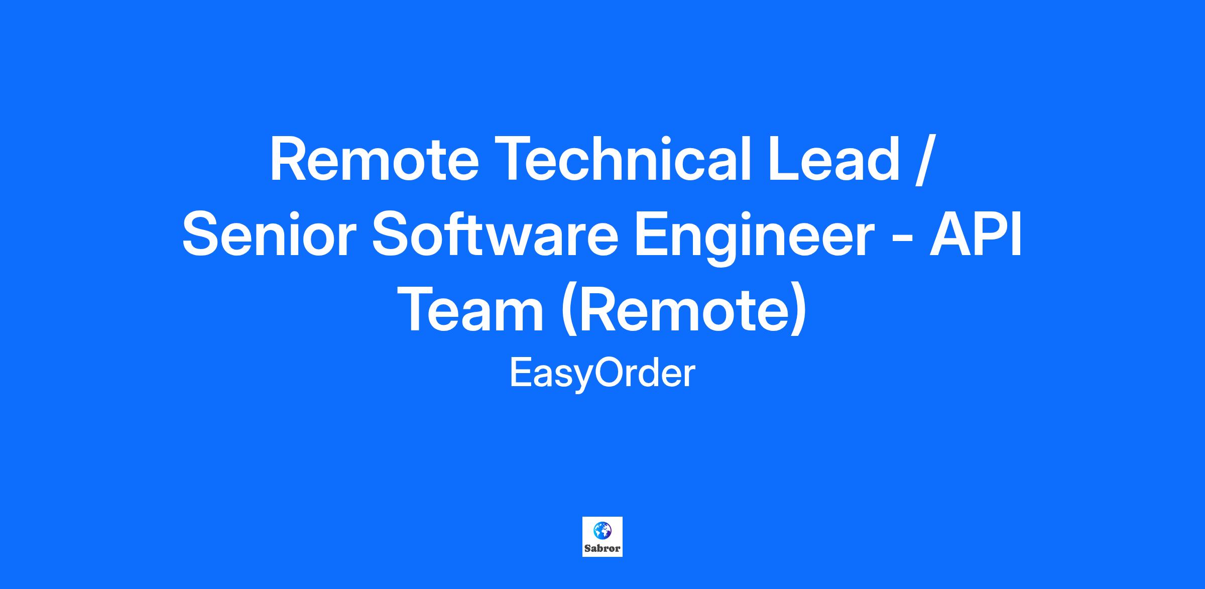 Remote Technical Lead / Senior Software Engineer - API Team (Remote)