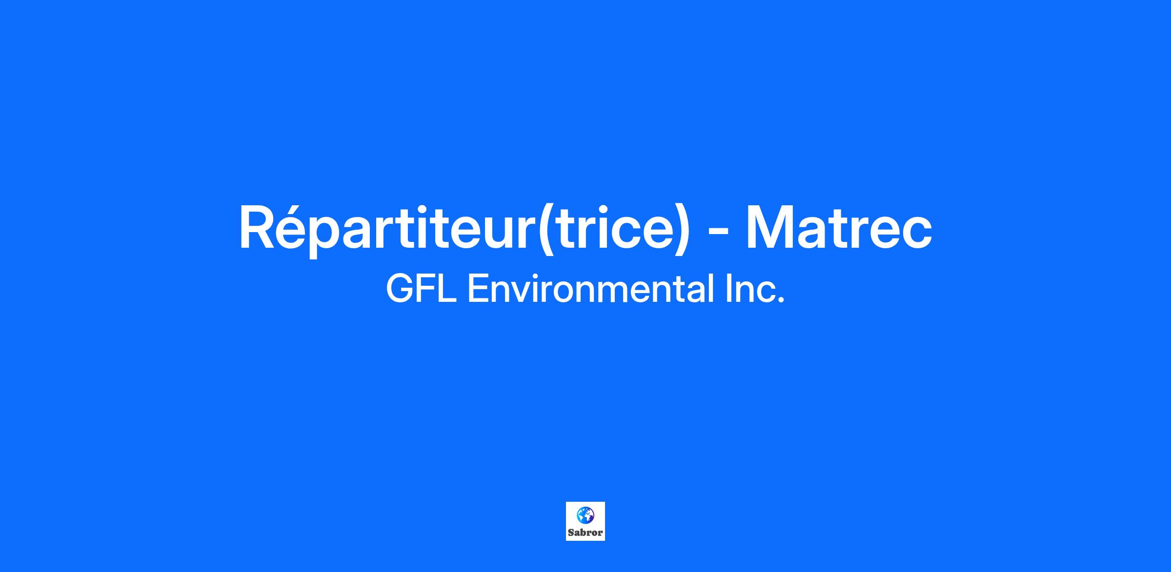 Poste : Répartiteur (trice) Lieu de travail : 4365 Boul. St-Elzéar, Laval. Poste permanent / Le poste requiert une disponibilité sur appel une fin de semaine sur deux. Bienvenue chez Matrec, une division de GFL! Nous sommes une entreprise dynamique, axée sur la croissance et la sécurité. GFL assure la collecte et le traitement des déchets, du recyclage ainsi que des matières organiques. Nous couvrons l’Amérique du Nord avec plus de 20 000 employés. Nous recherchons une répartitrice ou un répartiteur à temps plein énergique et motivé(e) pour soutenir notre entreprise en pleine croissance. Sous l’autorité de la Directrice Général, la répartitrice ou le répartiteur est responsable de coordonner la circulation efficace et sécuritaire des camions de collecte de matières résiduelles selon les besoins définis. Il ou elle est aussi responsable de développer un excellent rapport avec la clientèle. Rôles & responsabilités : Dans le cadre de vos fonctions, vous serez en charge de planifier l’horaire journalier des chauffeurs. Vous serez responsable de distribuer les différents déplacements pour les chauffeurs. Vous aurez à communiquer avec les clients et leur expliquer la tarification. Vous devrez assurer un excellent service à la clientèle au téléphone. Vous vous chargerez d’assurer un suivi auprès des chauffeurs et des clients. Vous aurez à consolider les bons de transport. Vous devrez accomplir toutes autres tâches pouvant être demandées par le supérieur immédiat. Ce que nous offrons : Salaire concurrentiel ; Temps plein ; Programme complet d'assurances collectives, payées à 100% par l’employeur; Programme de REER avec participation de l’employeur ; Un environnement dynamique et stimulant, fondé sur l’honnêteté, la confiance et le respect ; Une compagnie dont vous pouvez être fière, qui partage vos idées et valeurs Qualifications & exigences : Nous sommes à la recherche d’un candidat ayant 2 à 3 années d’expériences dans le milieu du transport, 1 à 2 années d’expérience en gestion de personnel; Une maîtrise du territoire couvert et une bonne connaissance de la géographie régionale sont requises pour optimiser les opérations de repartition; De l’expérience dans le domaine des matières résiduelles sera considéré comme un atout; Pour occuper le poste, il est essentiel de démontrer une forte habileté à travailler sous pression, à bien gérer son temps et ses priorités; Le candidat doit faire preuve de rigueur, avoir le sens de l’organisation et un sens décisionnel; La connaissance des logiciels de la suite Microsoft Office est nécessaire; Matrec We thank you for your interest. Only those selected for an interview will be contacted. GFL is committed to equal opportunity for all, without regard to race, religion, color, national origin, citizenship, sex, sexual orientation, gender identity, age, veteran status, disability, genetic information, or any other protected characteristic. If you are interested in applying for employment and need special assistance or an accommodation to apply for a posted position, please contact myworkdayrecruitment@gflenv.com Current GFL Employees If you are an existing GFL employee and would like to search and apply to current job openings, please visit the internal GFL Jobs Hub. At the heart of GFL lies our greatest asset—our people. So, we're glad you landed here! We believe in great careers, making a positive impact on the environment and supporting our people with their life ambitions. We aspire to create the right jobs in a way that brings you along with us. At GFL, growth isn’t just for our business—it’s for our people. Because we see the potential in all our employees to do whatever it is they set their mind to, and we’re proud to support them in that journey. We consider our employees’ personal goals, helping them create the career, and life, that they desire—whether it’s advancing in their job, learning new skills, forming lasting relationships, or mentoring others, while having time to pursue other life ambitions. With safety and sustainability at the core of what we do, we all come together to form “Team Green”—united by our shared purpose to provide environmental solutions that enable our customers and the communities we serve to be Green For Life. We’re proud to say that working for GFL is more than a job. It’s an opportunity to make a difference and grow tremendously along the way. Regardless of the work we’re doing today, we’ve got our sights set on the big picture—not just tomorrow, but for life. GFL empowers those looking for growth in their career and lives, whether that's on our Field Operations teams or Professional Services teams. Field Operations – Our Field positions offer candidates across North America the potential for limitless growth and skill expansion as the front line of our organization, making them central to our company's vision of creating cleaner and more sustainable communities. Professional Services – Our Corporate positions located in key North American offices grow candidates to form strong client relations, manage key programs and accounts, and ensure our Field teams are operating at maximum efficiency.