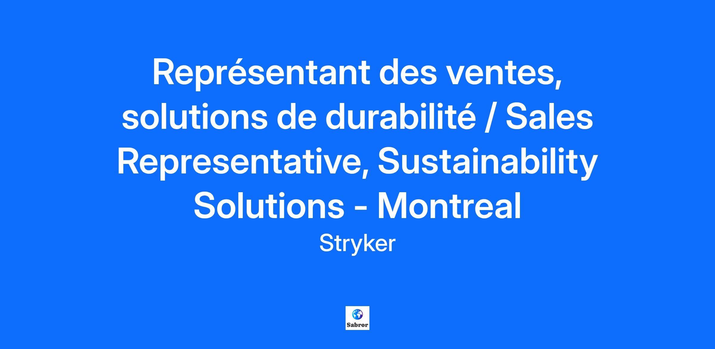 Work Flexibility: Field-based Ce que vous ferez : Les Solutions de durabilité de Stryker s’engagent à offrir des soins de santé durables. Le représentant commercial, Solutions de durabilité a pour principales responsabilités de générer des revenus en planifiant, en dirigeant et en coordonnant la collecte des dispositifs médicaux usagés de Stryker et la vente de dispositifs médicaux reconditionnés approuvés. Cette personne doit être un membre actif de l’équipe Solutions de durabilité tout en défendant la mission et les valeurs de Stryker. En savoir plus sur les solutions de durabilité Stryker : https://www.stryker.com/us/en/sustainability.html Assurer la continuité du flux de revenus en participant à la préparation et à l’exécution des plans et campagnes de vente, des plans d’entreprise et des plans de développement de produits. Entretenir des relations régulières avec le personnel de divers établissements de santé afin d’examiner l’utilisation, de répondre aux préoccupations et de fournir des informations sur le programme de recyclage des Solutions de durabilité de Stryker et sur les avantages environnementaux et financiers qui en découlent. Élaborer des plans d’action spécifiques adaptés aux besoins des clients en ce qui concerne le reconditionnement et le retour des dispositifs médicaux à usage unique retraités. Surveiller la disponibilité des produits pour obtenir et clôturer les bons de commande de façon cohérente tout au long du mois. Favoriser les relations clés entre les différents services des établissements de soins qui lui sont confiés afin de créer de nouvelles occasions commerciales avec les clients existants et d’y répondre. Participer à des revues d’affaires et à des réunions en cours de service, ou en prendre l’initiative, en utilisant des compétences de présentation solides et efficaces afin d’éduquer et d’influencer les clients pour accroître leur niveau de participation. Développer les relations avec les clients et la compréhension des problèmes d’affaires des clients et aligner la solution commerciale des Solutions de durabilité de Stryker sur les économies de coûts. Diffuser des messages de valeur ajoutée et de différenciation dans l’environnement technique du client afin de démontrer comment la mise en œuvre des programmes de recyclage et de reconditionnement des Solutions de durabilité de Stryker permettra d’atteindre les buts et objectifs du client. Favoriser la satisfaction des clients et l’augmentation du chiffre d’affaires en mettant en œuvre le reconditionnement pour les nouveaux comptes et les programmes avec les clients afin de s’assurer que les occasions commerciales sont pleinement saisies. Effectuer des audits réguliers de l’épargne pour montrer les types et le volume des produits collectés afin de pénétrer davantage le compte et de saisir les occasions non exploitées. Démontrer les économies actuelles et les économies prévues grâce à une intégration plus poussée du reconditionnement au sein de l’établissement de soins de santé. Coordonner la collecte et l’expédition de routine des dispositifs médicaux recyclables à usage unique depuis les comptes assignés vers les installations de production afin d’assurer un afflux suffisant de produits à reconditionner. Contrôler l’utilisation lors de la collecte des produits afin de s’assurer que le recyclage des produits et la gestion des comptes sont optimisés. Ce qui est requis de votre part : Requis : Baccalauréat Trois ans ou plus d’expérience dans un poste de vente externe Bilinguisme français et anglais Autres informations Doit pouvoir voyager (au sol et par avion) pour soutenir les responsabilités du territoire ainsi que les tâches et obligations liées à l’entreprise. Les candidats internes ayant une combinaison équivalente de formation, d’expérience et de performance au fil du temps chez Stryker seront pris en considération Doit détenir un permis de conduire valide. Notre siège social canadien est situé en Ontario. Pour les postes basés au Québec, la maîtrise de l’anglais peut être requise lorsque les fonctions du poste nécessitent des communications fréquentes, orales et écrites, avec des équipes situées à l’extérieur du Québec, notamment en Ontario et aux États-Unis, et ce, dans un contexte où les documents de travail, les outils technologiques et les réunions se déroulent principalement en anglais. Cette exigence est donc directement liée à la nature des tâches à accomplir et aux responsabilités du poste. What you will do: Stryker’s Sustainability Solutions (SSS) is committed to sustainable healthcare. The Sales Representative, Sustainability Solutions has key responsibilities to generate revenue by planning, directing, and coordinating the collection of Stryker used medical devices and the sales of approved reprocessed medical devices. This individual must serve as a contributing member of the Healthcare Solutions team while championing Stryker’s Mission and Values. Learn more about Stryker’s Sustainability Solutions: https://www.stryker.com/us/en/sustainability.html Ensures the continual revenue stream through participation in the preparation and execution of sales plans and campaigns, business plans and product developments plans Speaks routinely with various healthcare facility staff to review usage, addresses concerns and educate on Stryker Sustainability Solutions recycling program and associated environment and financial benefits Develops specific action plans tailored to customer needs regarding the reprocessing and return of reprocessed single-use medical devices Monitors product availability to obtain and close purchase orders consistently throughout the month Fosters key relationships throughout the departments in assigned healthcare facilities to create and respond to new business opportunities with existing cu