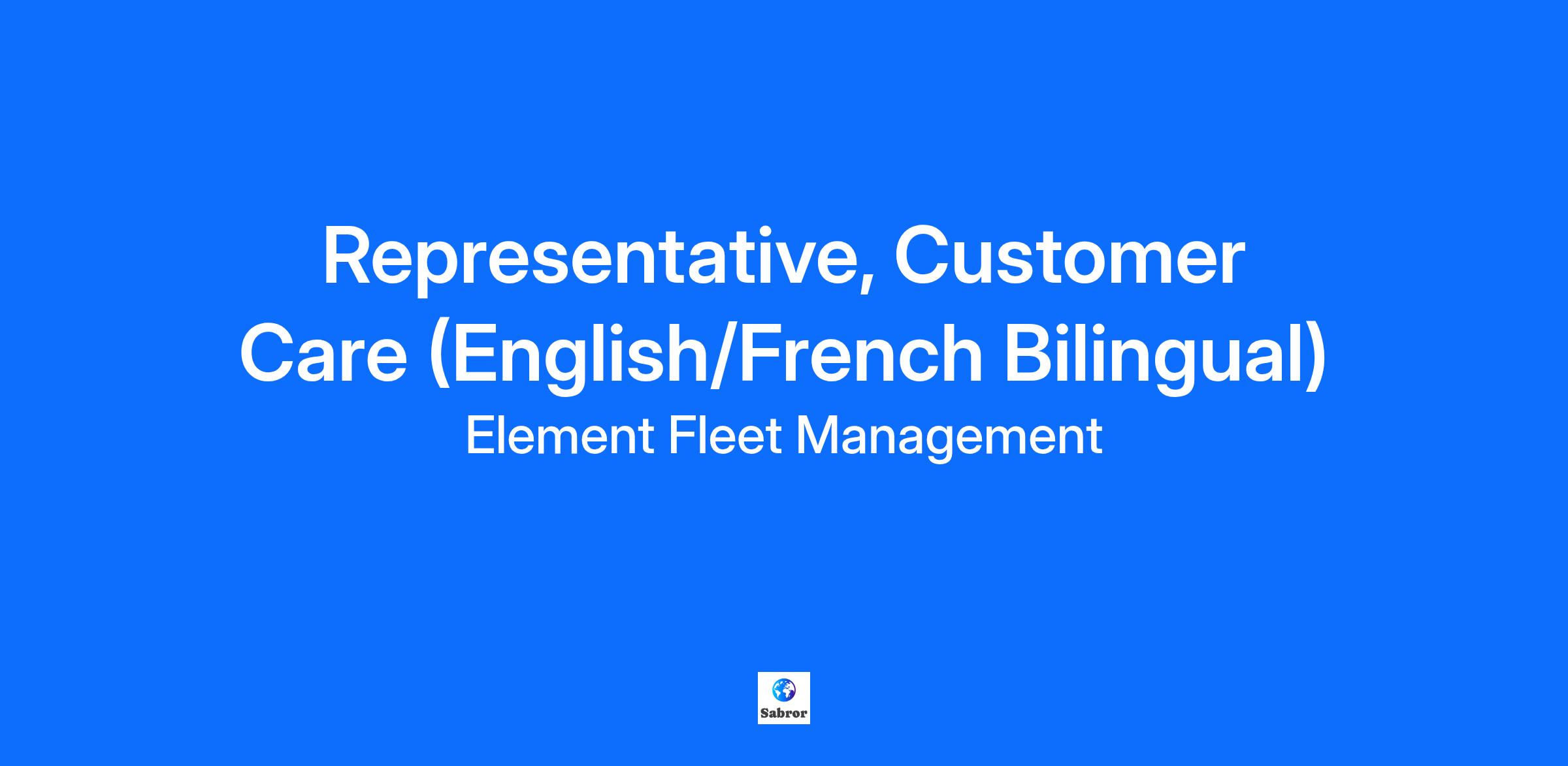 Get started on an exciting career at Element! Element employees make a difference in the lives of others every day. We are re-defining the fleet management industry to be people first, then business – delivering on our promise of a superior client experience. This takes hard work and innovation, and we need more like-minded people on our team. About the Role We’re looking for a customer focused and adaptable professional to join our team as a Customer Care Representative. In this role, you will be the liaison between our company and customers to process claim information in response to inquiries, concerns, and requests about fleet incident/safety services with a focus on providing outstanding customer service. What You’ll Do Provide service to customers via telephone and/or electronically Assess caller’s needs, clarify information, research any issue, and provide solutions and/or alternatives Handle calls in an efficient manner, minimizing driver/client time to resolve issues Strive for first call resolution Exhibit applicable empathy during each call ensuring a superior customer experience Meet personal/team qualitative and quantitative targets Work effectively in a team environment, and when needed provide back-up support for administrative tasks Basic Qualifications High School Diploma Proficiency in Microsoft Office Suite (Word, Outlook, Excel) competency Ability to learn and navigate new software quickly Professional communication with customers via telephone and email 1+ years of customer service experience Ability to work effectively with others and contribute to team task accomplishments Ability to effectively manage multiple priorities and adapt to change within a fast-paced business environment Ability to work full-time 5 days per week, which will include one weekend day Telecommuting requirements include: a quiet dedicated work area, ability to keep all company sensitive documents secure, and access to a high-speed internet connection Must be English/French bilingual Preferred Qualifications Education: College/University degree preferred Contact center experience preferred but not needed Location: Canada Remote near our Toronto, ON, Canada office – with the ability to attend in office trainings, meetings, and events. Work Schedule Training Period: Monday through Friday for 2 weeks, 8:30 AM ET to 5:00 PM ET Post-Training Schedule: You will be assigned a scheduled shift which will include one weekend day. The hours of this team are 8:00 AM ET to 8:00 PM ET. We provide all the computer equipment needed to perform your job from home. The hiring base salary range for this position is $51,800 to $71,200 annually. Actual compensation within this range will be dependent upon the individual’s knowledge, skills, experience, equity with other team members, and alignment with market data. Please note that the disclosed salary range is solely for candidates hired to perform work within this geographic location. Candidates hired to work in other locations will be subject to the pay range associated with that location. What’s in it for You • A culture of innovation, empowerment, decision-making, and accountability • Comprehensive health and welfare benefits that serve the needs of you and your family and foster a culture of wellness (for qualified roles) • Additional benefits and amenities, including paid time-off programs (vacation, sick leave, and holidays) (for qualified roles) Applicants will be required to undergo a background check only if and after a conditional offer of employment has been extended. Element Fleet Management and its wholly owned subsidiaries are an equal opportunity employer committed to diversity, equity, inclusion, and belonging. We are pleased to consider all qualified applicants for employment without regard to race, color, religion, gender identity, age, sex, sexual orientation, disability, national origin, Aboriginal/Native American status, protected veterans’ status or any other legally-protected factors. Disability-related accommodations during the application and interview process are available upon request. Should you require an accommodation with our hiring process please send an email to talentacquisition@elementcorp.com or call (800) 665-9744. Element Fleet Management (TSX: EFN) is the largest publicly traded pure-play automotive fleet manager in the world. As a Purpose-driven and client-centric company, we deliver value through scalable, sustainable, and technology-enabled fleet and mobility solutions. Through the Element-Arval Global Alliance, we operate in over 50 countries, supporting clients across North America, Australia, New Zealand, Ireland, and beyond. Our global reach is further extended by Autofleet, our technology platform accelerating the modernization of our digital capabilities. Element delivers end-to-end solutions to our clients—from vehicle acquisition and maintenance to EV integration, route optimization, risk management, and remarketing. Our People Drive Our Success At Element, our success begins with you. Inspired by our Purpose to Move the world through intelligent mobility—and guided by our Values: We are always a force for good, We are experts defining the future of mobility and We are driven by client success. Everyday, our team members deliver on our Purpose and our Values for each other, our communities and our clients. It’s our commitment to how we work, grow and put our clients at the heart of everything we do.