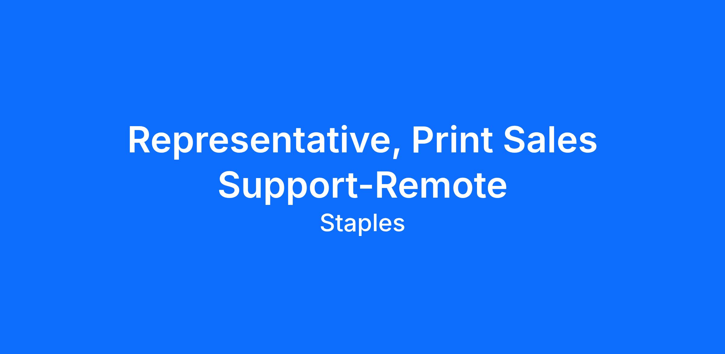 The Representative, Print Sales Support, manages the intake and quoting of print business referrals submitted online, Staples Canada store teams and Staples Professional. This role ensures prompt and accurate quoting, qualifies leads for routing to the print sales teams, and helps create a smooth customer experience. This position is critical in driving revenue growth, improving operational efficiency, and enhancing customer satisfaction through timely and professional support. The Representative is a key liaison between store teams and sales, ensuring that every referral is handled precisely and carefully.