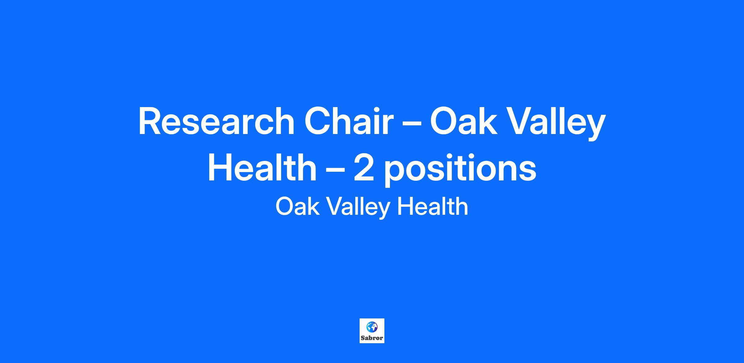 Please Note: If you are a current Oak Valley Health employee, apply to this job via the internal Workday application. Land acknowledgement: Oak Valley Health is honoured to provide care on the traditional and treaty territory of the Anishinaabeg, and acknowledge our closest Indigenous communities, the Chippewas of Georgina Island and the Mississaugas of Scugog Island. The land is encompassed within Treaty 13, Treaty 20, and the Williams Treaty. Today, this area is home to many diverse Indigenous Peoples, and we acknowledge the health disparities and barriers Indigenous Peoples face in accessing care. To support true healing, we are committed to understanding these challenges, learning from Indigenous knowledge, and taking action together to improve safe and equitable health care for current and future generations. Who you are: You encompass Oak Valley Health’s core values and live the words of respect, trust, commitment, compassion and courage You are a patient and/or client centered individual who performs at an exemplary standard You are a team player with excellent communication, critical thinking and prioritization skills Oak Valley Health (OVH) is on a journey to becoming a leading community academic centre of choice. With the intention of accelerating our burgeoning research program, OVH invites applications from researchers for two (2) inaugural Research Chair positions. Each position provides funding to support research, teaching and scholarly activities for experienced investigators who have demonstrated significant contributions to knowledge production and scholarship in key area(s) of impact to the communities we serve. These are three-year term positions. For each of these positions, the ideal candidate is a seasoned researcher with an entrepreneurial spirt and experience conducting research in the healthcare setting particularly relevant to: health concerns of the populations we serve such as diabetes and/or cardiovascular disease. In addition to pursuing their own scientific work, the successful candidate will contribute to supporting and mentoring emerging researchers and will propose an original and innovative research program of high quality that is aligned with OVH’s mission to serve the community. Qualifications: Hold the academic qualifications appropriate to their field of research (e.g., PhD, MD, or equivalent) Have relevant experience engaging in the formation of, and conducting methodologically sound research Be recognized in their field as an outstanding and innovative researcher whose accomplishments have made significant contribution to the expansion and dissemination of knowledge Have held research grants as a principal investigator Have a track record of mentorship/leadership to develop and attract new talent and increase research capacity at OVH Applications will be accepted until the positions are filled. We invite all interested and qualified candidates to submit an expression of interest and current Curriculum Vitae to Trevor Whyte, Manager, Medical Administration at trwhyte@oakvalleyhealth.ca About us: Oak Valley Health is one of Ontario’s leading community health care organizations. Across our two hospitals, Markham Stouffville Hospital and Uxbridge Hospital, as well as our Reactivation Care Centre, we deliver safe, high-quality care to more than 441,000 patients annually. With a strategic goal of becoming a leading community academic centre of choice, we have prioritized the growth of research and education programs that improves care for our community. We know that offering our patients the latest treatments and models of care provides them with access to the latest cutting-edge research, in the comfort of their community. With over 600 professional staff, 3,300 dedicated staff, and more than 900 active volunteers, we are committed to celebrating our people, fostering connections, and driving innovative growth. We provide integrated care for healthier communities and deliver an extraordinary patient experience through our honoured to care culture to residents of Markham, Whitchurch-Stouffville, Uxbridge, and beyond. Oak Valley Health thanks all qualified applicants for their submissions however only selected candidates who qualify will be contacted to attend a pre-application interview. We reserve the right not to appoint anyone to this position(s). Oak Valley Health takes pride in serving some of Canada’s most diverse communities. We are committed to fostering an environment of equity and inclusivity where every person can work and receive care safely, openly and honestly. All qualified applicants will receive consideration without regard to race, colour, religion, gender, gender identity or expression, sexual orientation, nation of origin, genetics, disability, age, veteran status, marital or family status, belief system, or other factors related to one’s personal identity and/or values. Work Schedule: Please note schedules may change due to operational needs. Compensation: Range: Who we are: Oak Valley Health is one of Ontario’s leading community healthcare organizations. Across our two hospital sites (Markham and Uxbridge) a Reactivation Care Centre (RCC), a Community Health Centre (CHC), and Hospital-to-Home programs, we provide high quality, patient-centred care to more than 468,000 patients each year. We offer diagnostic and emergency services, and deliver clinical programs in acute care medicine and surgery, addictions and mental health, and childbirth and children’s services. We are also proud to be part of the Eastern York Region North Durham Ontario Health Team (OHT). Our 542 physicians, 35 midwives, over 3,000 staff and 1,000 volunteers serve patients and families with an Honoured to Care mindset, and are focused on delivering an extraordinary patient experience to the residents of Markham, Whitchurch-Stouffville, Uxbridge and beyond. We are dedicated to providing access to the right care, at the right time, in the right plac