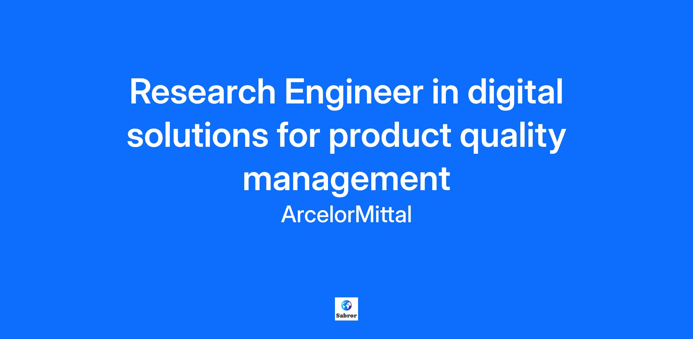 As Research Engineer in Quality & Product Department, you will lead exciting projects that make a real impact on product quality and that contribute to the digital transformation of ArcelorMittal.