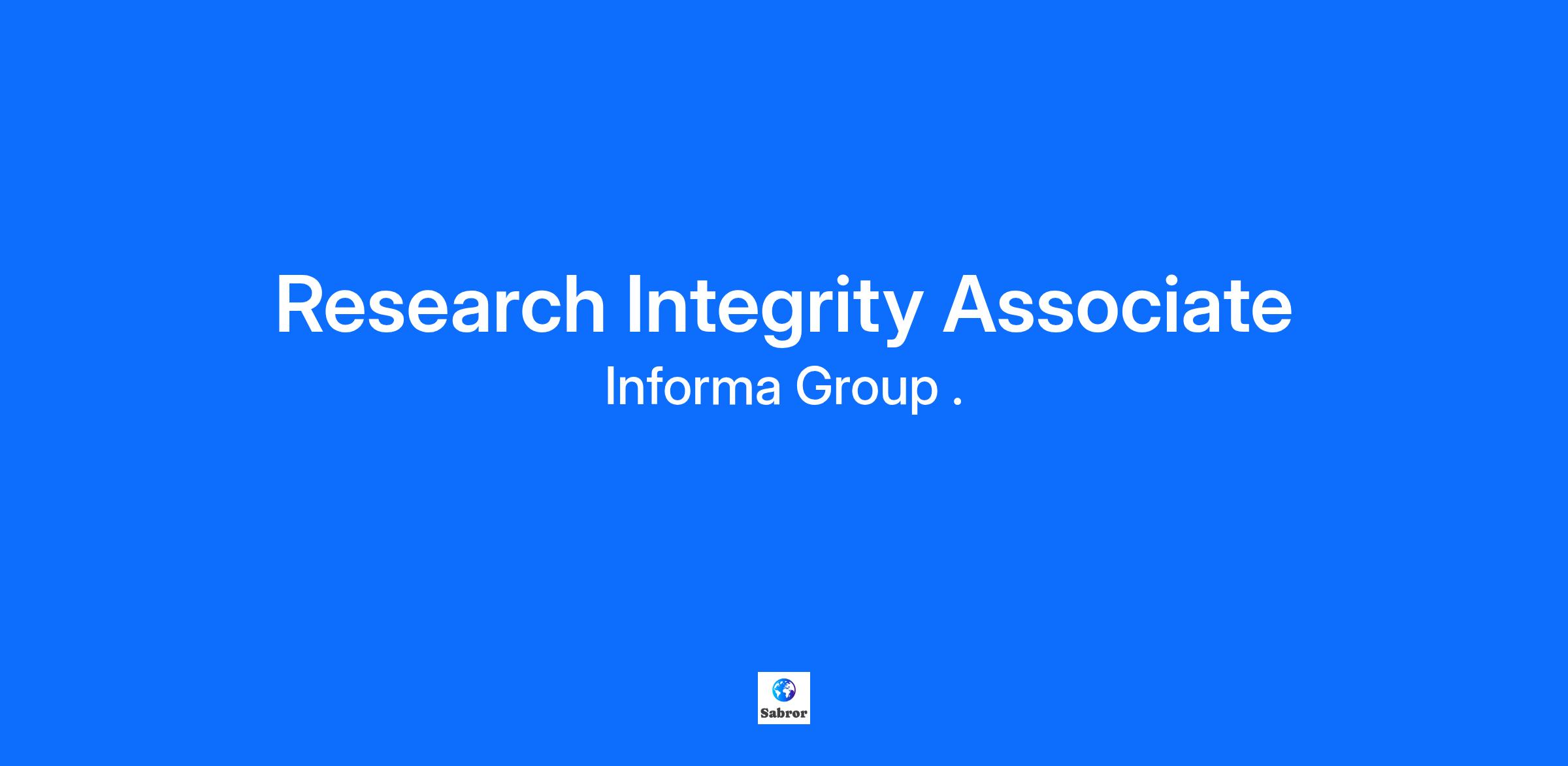 Reporting into the Head of Research Integrity and Ethics, Research Integrity Associates (RIAs) play a key role in triaging and help drive resolutions on ethics and integrity queries and cases across Taylor & Francis Group journals and books. Working across departments and stakeholders, the RIAs play an important role within the Publishing Ethics and Integrity team in ensuring that tasks and systems related to ethics and integrity investigations are handled professionally and efficiently.