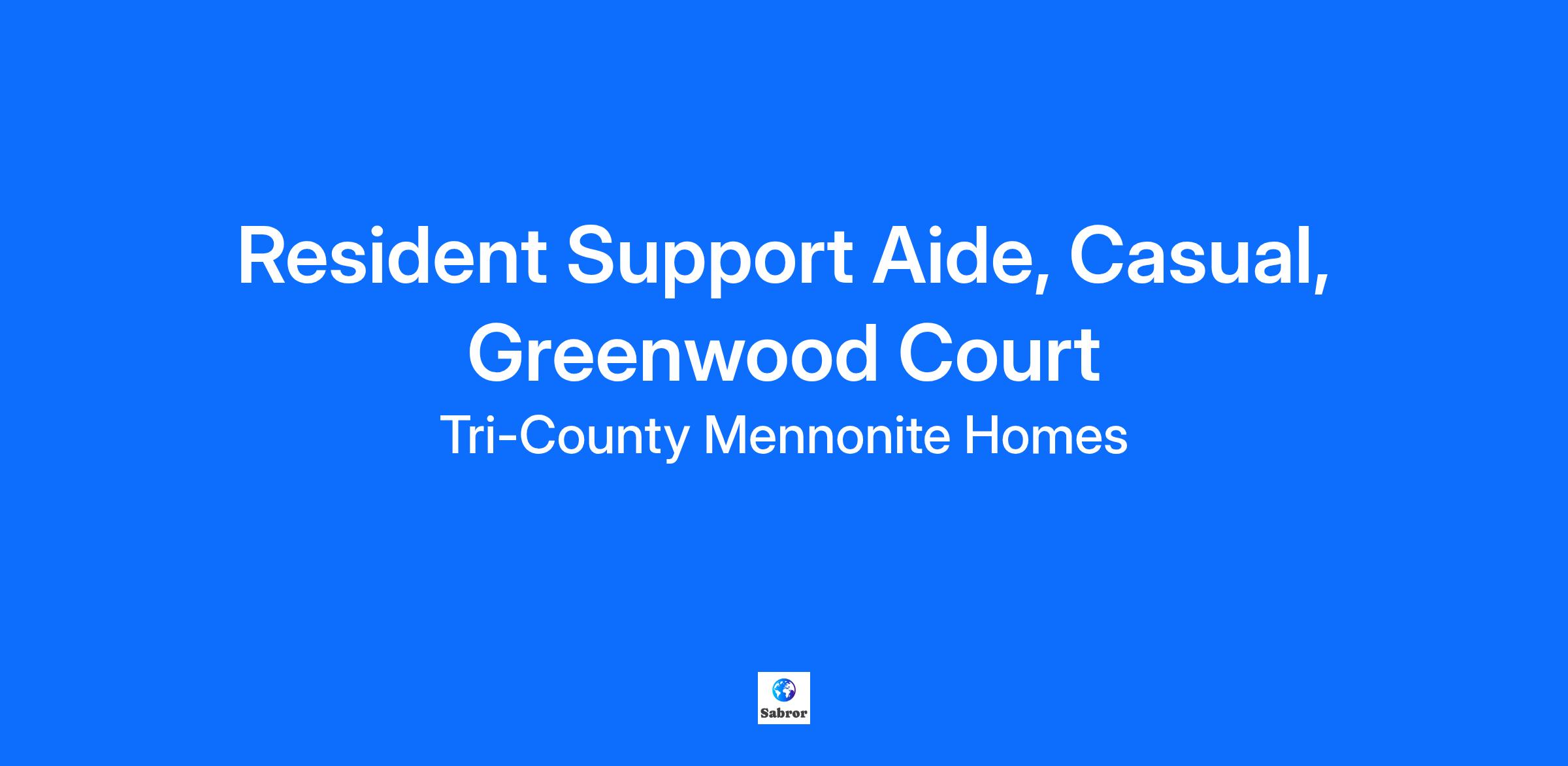 Resident Support Aide Casual Greenwood Court, Tri-County Mennonite Homes Stratford, ON About Greenwood Court: Greenwood Court is designed as a 'Community of Care' where seniors are able to age in place. As the needs of our seniors change, they have access to additional services and supports without having to leave familiar surroundings or newly developed friendships. Staff and volunteers are committed to making Greenwood Court "a place to call home" for its residents. About the position: The Resident Support Aide (RSA) will be an integral member of the team. This position is responsible for but not limited to providing for the needs of residents, performing specific tasks in the care of the residents, and observing and reporting changes in the residents’ physical and emotional condition. We are looking for candidates with a great attitude to join our team. Wage: $19.51-$23.03 Experience Working experience with the elderly in a health care setting, knowledgeable with respect to their needs Qualifications: Strong communication skills both verbal and written Must be able to relate, communicate and co-operate effectively with staff, residents, residents’ families, and the public Able to tolerate standing and lifting throughout the workday Ability to follow verbal and written instructions Demonstrated working experience with the elderly in a health care setting, knowledgeable with respect to their needs. Knowledge of procedures and techniques involved in administering simple treatment and related bedside care to resident. Sensitive and empathetic to the needs of the residents. Enrolled or willing to enroll in PSW online certificate program an asset. What we Offer: Full-time, part-time and casual opportunities Pension plan Health and dental benefits Short-term disability Life insurance Paid orientation Training opportunities and career development Employee appreciation lunches and events An employee Social Committee Tuition support programs Employee pricing on meals from our kitchen A positive and supportive working environment About Tri-County Mennonite Homes New employees will be required to complete a vulnerable sector check and TB test as part of the onboarding process. Tri-County Mennonite Homes does not require COVID-19 vaccination as a part of the onboarding process, however TCMH continues to strongly recommend "up-to-date" COVID-19 vaccinations. Tri-County Mennonite Homes is a leader in providing services to seniors and adults with developmental disabilities. With dedicated staff and volunteers, we operate three divisions: Greenwood Court in Stratford, Nithview Community in New Hamburg, and Aldaview Services in New Hamburg. Our mission is "Making Every Day Matter". Tri-County Mennonite Homes is pleased to accommodate individual needs in accordance with the Accessibility of Ontarians with Disabilities Act, 2005 (AODA), within our recruitment process. If you require accommodation at any time throughout the recruitment process, please speak with our Human Resources Consultant.