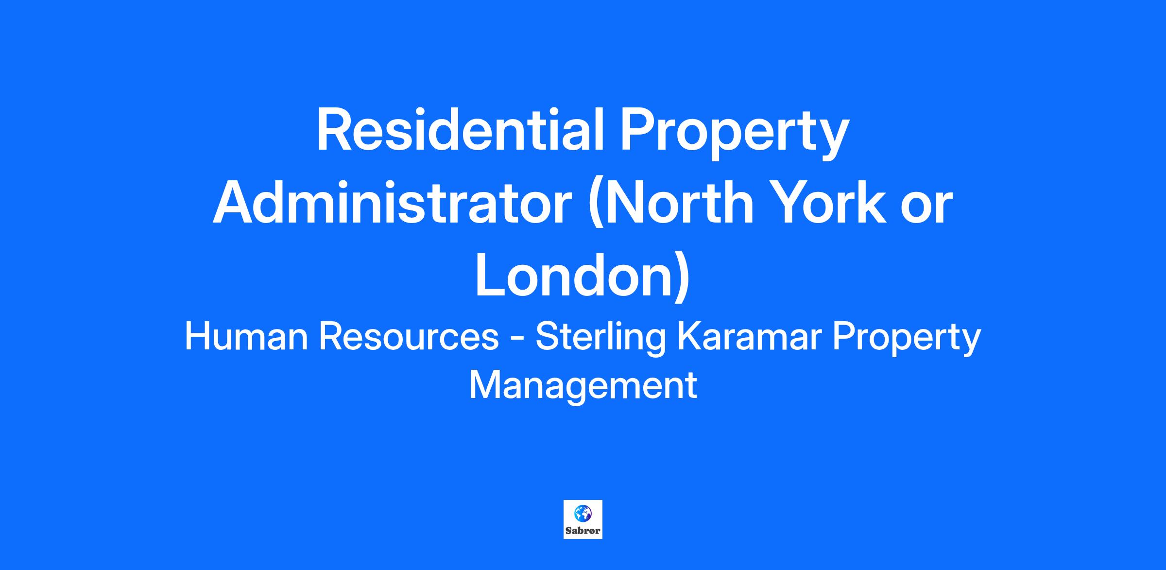Residential Property Administrator (North York or London)