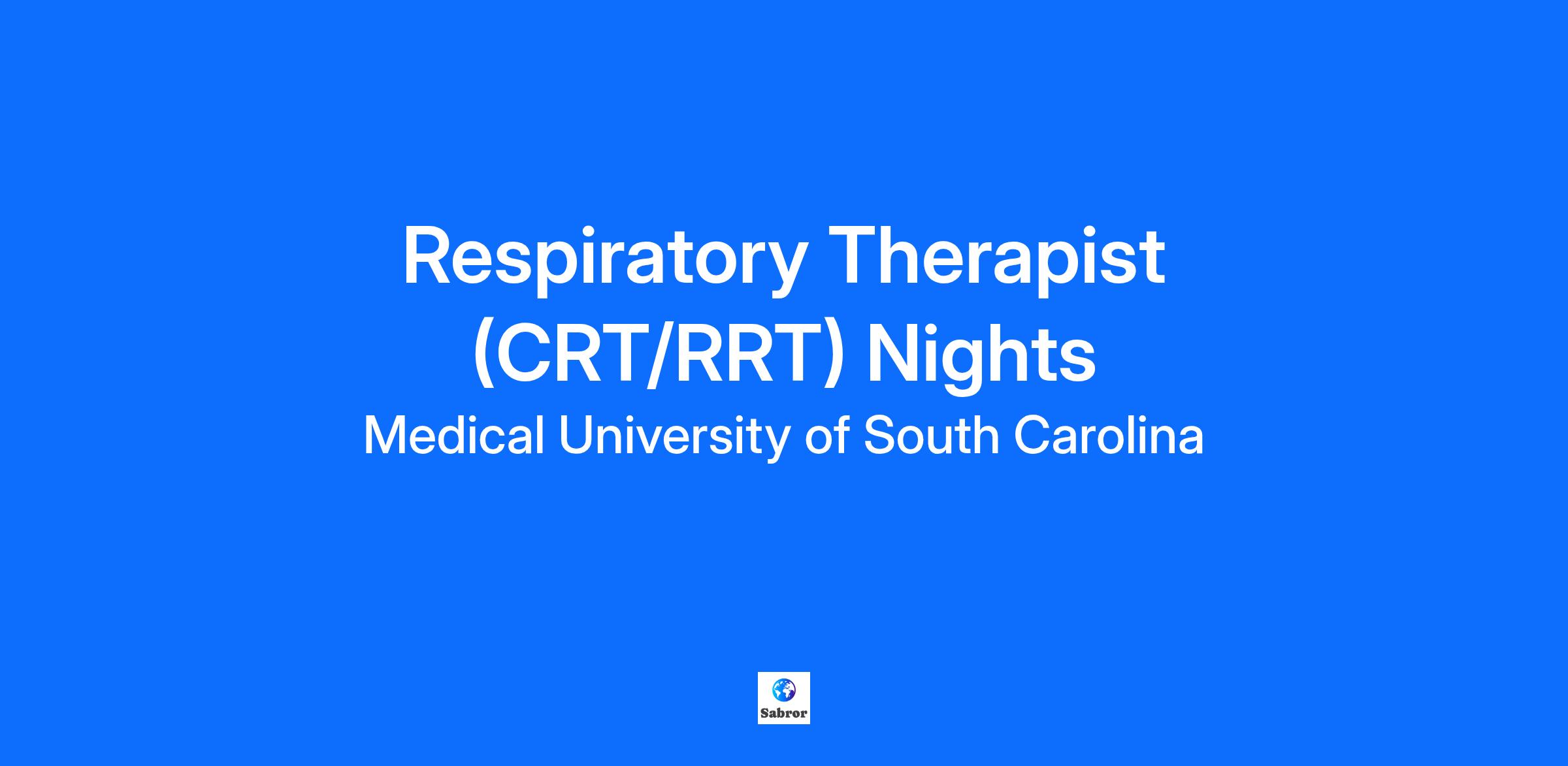 Job Description Summary Come join our Respiratory Therapist TEAM - Where your expertise makes every breath count. Let us help you breathe life into your career! Entity Medical University Hospital Authority (MUHA) Worker Type Employee Worker Sub-Type Regular Cost Center CC001543 LAN - Respiratory Therapy (LMC) Pay Rate Type Hourly Pay Grade Health-26 Scheduled Weekly Hours 36 Work Shift Nights (United States of America) Job Description Are you passionate about helping patients breathe easier and live healthier lives? Join our dedicated healthcare team and make a difference every single day! We’re seeking a Respiratory Care Practitioner (RCP) who’s ready to bring skill, compassion, and innovation to our Cardiopulmonary Services department. Benefits: South Carolina State Health Insurance South Carolina State Retirement Competitive pay Paid Parental Leave Advancement Opportunities What You’ll Do As a key member of our care team, you’ll: Administer cardiopulmonary therapeutic modalities to patients of all ages Maintain airways and provide life-saving ventilation support Assist in diagnosing, treating, and managing pulmonary disorders Collect and analyze respiratory specimens (sputum, blood, breath) Measure lung function and administer physician-prescribed treatments Take primary responsibility for respiratory care treatments and oversee RT technicians You may also have the opportunity to be cross-trained in related procedures such as EEG, EKG, Stress Testing, and Sleep Studies — expanding your skill set and advancing your career. Additional Job Description Education: Graduate of an accredited college of Respiratory Therapy. Licenses/Certification: Respiratory Therapist credentialed by the NBRC as a Registered Respiratory Therapist or awaiting NBRC exam and possess a current South Carolina License. Must have and maintain Basic Life Support (BLS), Advanced Cardiovascular Life Support (ACLS), and Pediatric Advance Life Support (PALS) with the American Heart Association and Neonatal Resuscitation Program. If you like working with energetic enthusiastic individuals, you will enjoy your career with us! The Medical University of South Carolina is an Equal Opportunity Employer. MUSC does not discriminate on the basis of race, color, religion or belief, age, sex, national origin, gender identity, sexual orientation, disability, protected veteran status, family or parental status, or any other status protected by state laws and/or federal regulations. All qualified applicants are encouraged to apply and will receive consideration for employment based upon applicable qualifications, merit and business need. Medical University of South Carolina participates in the federal E-Verify program to confirm the identity and employment authorization of all newly hired employees. For further information about the E-Verify program, please click here: http://www.uscis.gov/e-verify/employees Thank you for wanting to be part of the Medical University of South Carolina team. Whether you want to teach the next generation of health care leaders, innovate new business models, discover the next breakthrough or provide patient care, there's a role for you that fuels your passion and takes advantage of your skills. There are career opportunities available in academics, research, hospital medicine, physician practices and support services, from patient billing to IT. As an applicant, you can search jobs for all MUSC entities as well as search by category and location. MUSC attracts more than $250 million annually in research funding, making it the biggest magnet for biomedical, extramural research dollars of all institutions of higher learning in South Carolina. The Clinical and Translational Science Award (CTSA) Program aims to advance clinical and translational science to increase the speed at which new treatments become available to patients. MUSC Health, the clinical enterprise, operates a 750 bed medical center, which includes a nationally recognized Children’s Hospital, the Ashley River Tower (cardiovascular, digestive disease, and surgical oncology), Hollings Cancer Center (one of fewer than 70 elite National Cancer Institute designated centers), a Level I Trauma Center and the Institute of Psychiatry. In addition, there are more than 100 outreach clinics, hospital/health system affiliations, and telehealth sites. U.S. News & World Report placed us among the top one percent of all American hospitals, with 11 specialties in the top 50. The MUSC Medical Center is also one of only three Magnet® designated hospitals in South Carolina.