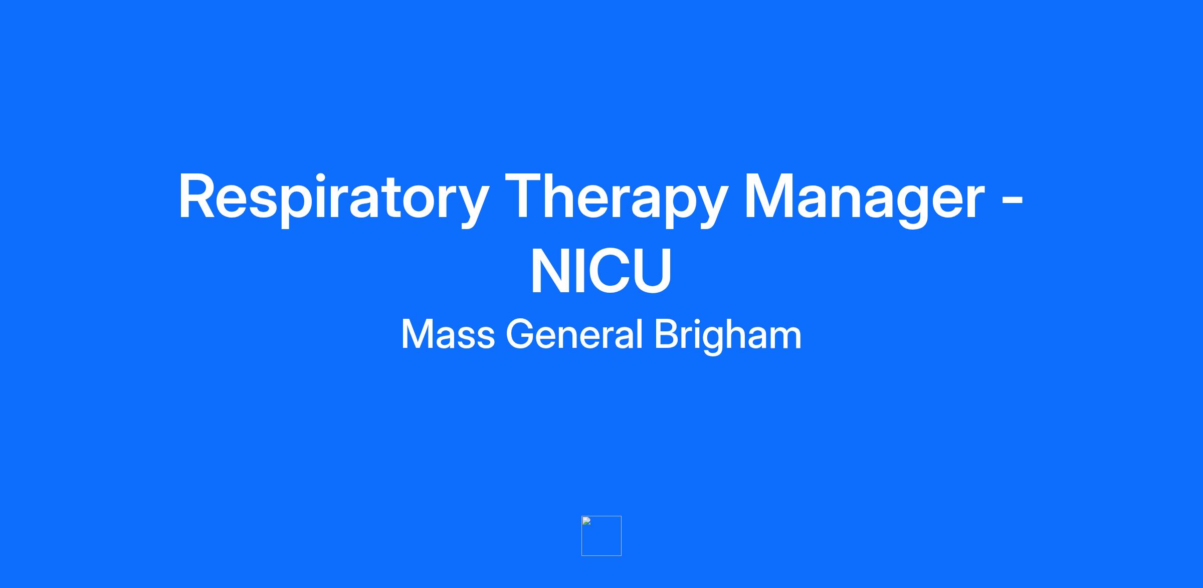 Site: The Brigham and Women's Hospital, Inc. Mass General Brigham relies on a wide range of professionals, including doctors, nurses, business people, tech experts, researchers, and systems analysts to advance our mission. As a not-for-profit, we support patient care, research, teaching, and community service, striving to provide exceptional care. We believe that high-performing teams drive groundbreaking medical discoveries and invite all applicants to join us and experience what it means to be part of Mass General Brigham. Job Summary The Respiratory Therapy Manager for the NICU oversees neonatal respiratory care services within the inpatient setting. This role ensures high-quality patient care for critically ill neonates, regulatory compliance, and staff development specific to neonatal intensive care. Essential Functions -Leads a team of neonatal respiratory therapists, providing guidance, mentorship, and supervision- including recruiting, training, scheduling, and evaluating staff performance to ensure optimal patient care. -Oversees the day-to-day operations of the respiratory therapy department- including establishing and maintaining departmental policies and procedures. -Collaborates with other healthcare professionals to coordinate and optimize patient care plans. -Manages respiratory therapy equipment, supplies and inventory within the department. -Promotes professional development among respiratory therapy staff by organizing and facilitating educational programs, workshops, and training sessions. -Assesses and evaluates the performance of the respiratory therapy department, monitoring key performance indicators. -Works closely with regulatory agencies to ensure compliance with standards and regulations related to respiratory therapy services and point of care testing for Blood Gas Analysis. -Performs other duties as assigned. Qualifications Education Bachelor's Degree Respiratory Therapy required and Master's Degree Respiratory Therapy preferred or Master's Degree Respiratory Therapy preferred Can this role accept experience in lieu of a degree? No Licenses and Credentials Basic Life Support [BLS Certification] Required Registered Respiratory Therapist [RRT] - The National Board for Respiratory Care (NBRC) preferred Respiratory Therapist [Massachusetts] Required Massachusetts Board of Respiratory Care preferred Respiratory Care Practitioner [State License] Required Experience Experience working as a respiratory therapist 3-5 years required Experience in a supervisory or management role 1-2 years required NPS Neonatal/Pediatric Respiratory Care Specialty (cert) preferred NICU experience 2-3 years preferred Knowledge, Skills and Abilities - Knowledge of anatomy, physiology, and pathophysiology of the respiratory system in the neonate. - Knowledge of respiratory therapy techniques and equipment applicable to the NICU. - Proficiency in performing basic and specialized respiratory care interventions applicable to the NICU and delivery room. - Ability to perform patient assessments and monitor patient progress. - Critical thinking and problem-solving skills to troubleshoot equipment and patient issues. - Ability to adapt in changing situations and respond appropriately in emergency situations. Additional Job Details (if applicable) Physical Requirements Standing Frequently (34-66%) Walking Frequently (34-66%) Sitting Occasionally (3-33%) Lifting Frequently (34-66%) 35lbs+ (w/assisted device) Carrying Frequently (34-66%) 20lbs - 35lbs Pushing Occasionally (3-33%) Pulling Occasionally (3-33%) Climbing Rarely (Less than 2%) Balancing Frequently (34-66%) Stooping Occasionally (3-33%) Kneeling Occasionally (3-33%) Crouching Occasionally (3-33%) Crawling Rarely (Less than 2%) Reaching Frequently (34-66%) Gross Manipulation (Handling) Frequently (34-66%) Fine Manipulation (Fingering) Frequently (34-66%) Feeling Constantly (67-100%) Foot Use Rarely (Less than 2%) Vision - Far Constantly (67-100%) Vision - Near Constantly (67-100%) Talking Constantly (67-100%) Hearing Constantly (67-100%) Remote Type Onsite Work Location 15 Francis Street Scheduled Weekly Hours 40 Employee Type Regular Work Shift Day (United States of America) Pay Range $116,105.60 - $168,854.40/Annual Grade 8 At Mass General Brigham, we believe in recognizing and rewarding the unique value each team member brings to our organization. Our approach to determining base pay is comprehensive, and any offer extended will take into account your skills, relevant experience if applicable, education, certifications and other essential factors. The base pay information provided offers an estimate based on the minimum job qualifications; however, it does not encompass all elements contributing to your total compensation package. In addition to competitive base pay, we offer comprehensive benefits, career advancement opportunities, differentials, premiums and bonuses as applicable and recognition programs designed to celebrate your contributions and support your professional growth. We invite you to apply, and our Talent Acquisition team will provide an overview of your potential compensation and benefits package. EEO Statement: The Brigham and Women's Hospital, Inc. is an Equal Opportunity Employer. All qualified applicants will receive consideration for employment without regard to race, color, religious creed, national origin, sex, age, gender identity, disability, sexual orientation, military service, genetic information, and/or other status protected under law. We will ensure that all individuals with a disability are provided a reasonable accommodation to participate in the job application or interview process, to perform essential job functions, and to receive other benefits and privileges of employment. To ensure reasonable accommodation for individuals protected by Section 503 of the Rehabilitation Act of 1973, the Vietnam Veteran’s Readjustment Act of 1974, and Title I of the Americans with Disabilities Act of 1990, applica