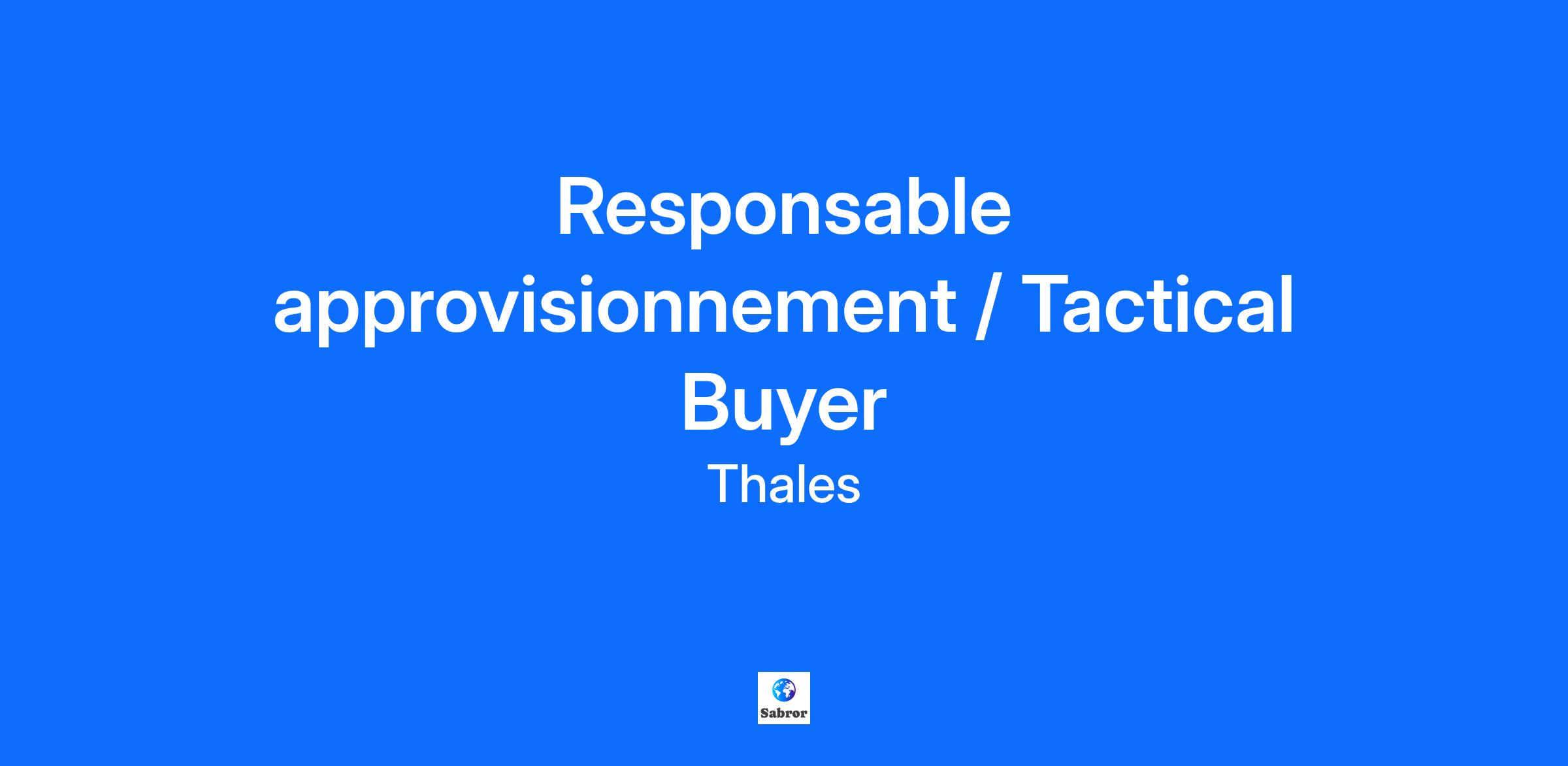 Location: Montreal, Canada Chez Thales, nos collaborateurs créent des solutions qui permettent aux deux tiers des avions de décoller et d’atterrir en toute sécurité. Nous concevons des systèmes de divertissement en vol qui captivent 50 millions de voyageurs chaque année. Nous mettons aussi au point l’avionique dont sont dotés les plus grands avions commerciaux au monde. De plus, nos simulateurs permettent de former la prochaine génération des pilotes d’avions de chasse et de transport ainsi que des pilotes d’hélicoptères de recherche et de sauvetage. Enfin, grâce à leur étroite collaboration, les membres de notre équipe aérospatiale font toute la différence. Du fond des océans aux confins de l’espace, les experts de Thales innovent et cherchent sans relâche à repousser les limites de la technologie. En rejoignant notre équipe de Montréal, vous participez au développement d’innovations qui propulsent l’aviation de demain vers un monde plus vert et plus sécuritaire. Vous évoluez avec une clientèle internationale à la fine pointe de la technologie au sein d’une équipe d’experts passionnés et stimulants qui développent des solutions avioniques critiques notamment pour les marchés des taxis urbains électriques. Faire partie de Thales, c’est adopter un environnement de travail hybride, convivial et dynamique offrant un bel équilibre travail/famille, et reposant sur des valeurs humaines chères à notre équipe. Vous accèderez également à un programme complet de formations ciblées, diversifiées et répondant à vos aspirations d’évolution de carrière dans le Groupe établi dans de nombreux pays. Thales people architect solutions that enable two-thirds of planes to take off and land safely. We create in-flight entertainment systems that engross 50 million fliers every year and we develop the avionics that control the world’s largest commercial aircrafts. Our simulators train the next generation of pilots for fighter jets, transporters and search and rescue helicopters. And, together, each and every member of our aerospace team makes a difference. The Avionics office in Marie-Curie, Montreal is Thales Group’s Centre of Competence for business and regional jet flight control systems is located at our Montreal – Marie Curie office. The team designs and integrates avionics suites, fly-by-wire flight control systems, SATCOM systems and other innovative concepts for the regional and business aircraft markets. Responsable approvisionnement / Tactical Buyer Il s'agit d'un rôle sur site situé à Montréal, hybride Résumé du poste Le Responsable Achats Tactiques / Responsable Approvisionnement exerce seul sur son périmètre toutes les responsabilités d'un Acheteur Tactique / Approvisionneur. Ce rôle requiert une très grande autonomie pour organiser son travail et pour respecter strictement les règles légales et le processus Thales. Principaux domaines de responsabilité Sur son périmètre d'activités, le Responsable Achats Tactiques doit : Tronc commun : - Participer au développement stratégique des métiers de la Supply Chain (ressources, moyens & investissements…) : logistique, approvisionnement (avec la fonction Achats), planification - Garantir la performance du flux physique et d’informations associées en termes d’entrée-sortie externe/interne en conformité avec le Plan Industriel et Commercial (PIC) - Transmettre le prévisionnel d'activité aux fournisseurs et analyser les risques - Utiliser les méthodes d'amélioration continue au service de son activité et pour animer les routines métiers - Contribuer au déploiement optimal, et à l’amélioration des outils et processus industriels (ERP-Enterprise Resource Planning, Chorus… ) et assurer l’utilisation des meilleures pratiques d’exécution - Proposer des paramètres articles et un pilotage qui permettent d'optimiser les impacts cash et stock pour son activité - Contribuer à la performance des fournisseurs - Suivre les indicateurs de satisfaction client, en particulier l’OTD (On Time Delivery) client, et impulser les éventuelles actions correctives - Piloter les interfaces de son entité (autres sites Thales, achats, ordonnancement, Comptabilité fournisseur, trade compliance …) - Garantir le respect du cadre règlementaire des flux entrants et sortants Dans son rôle de contributeur individuel : - Réceptionner les demandes d'achat et vérifier leur conformité - Il / elle est responsable de la transformation d'un PR en PO utilisant les différents éléments provenant des Category Managers / Category Buyers, et du suivi du PO une fois émis. - Il / elle peut être périodiquement tenu d'accélérer et de suivre les commandes afin d'assurer le respect des délais et des exigences de qualité, notamment en ce qui concerne l'attribution des marchés aux fournisseurs. En outre, il / elle assistera les CM / CB dans la préparation des devis, l’analyse des données, les résumés des devis, les créations de fournisseur divergentes et toute autre tâche liée au processus d’approvisionnement. -Suivre les indicateurs de performance de son périmètre d'activités et proposer les éventuelles actions correctives - S'assurer du respect du cadre règlementaire des flux entrants et sortants Qualifications minimales Anglais & Français- -Ce poste requiert une bonne connaissance de l'anglais pour interagir, soutenir et/ou fournir des services à des clients, employés et/ou partenaires internationaux ainsi qu’à des autorités gouvernementales étrangères qui ne parlent pas français Connaissances requises : - Connaissance des métiers de la supply chain - Connaissance des méthodologies de gestion des stocks et de gestion des flux - Mise en œuvre des outils de l’amélioration continue et de pilotage (Lean : Maitrise des flux, Pratique des Gemba Walks, Salle Boussole, PDCA,…) - Pratique des techniques d’analyse et de résolution de probl