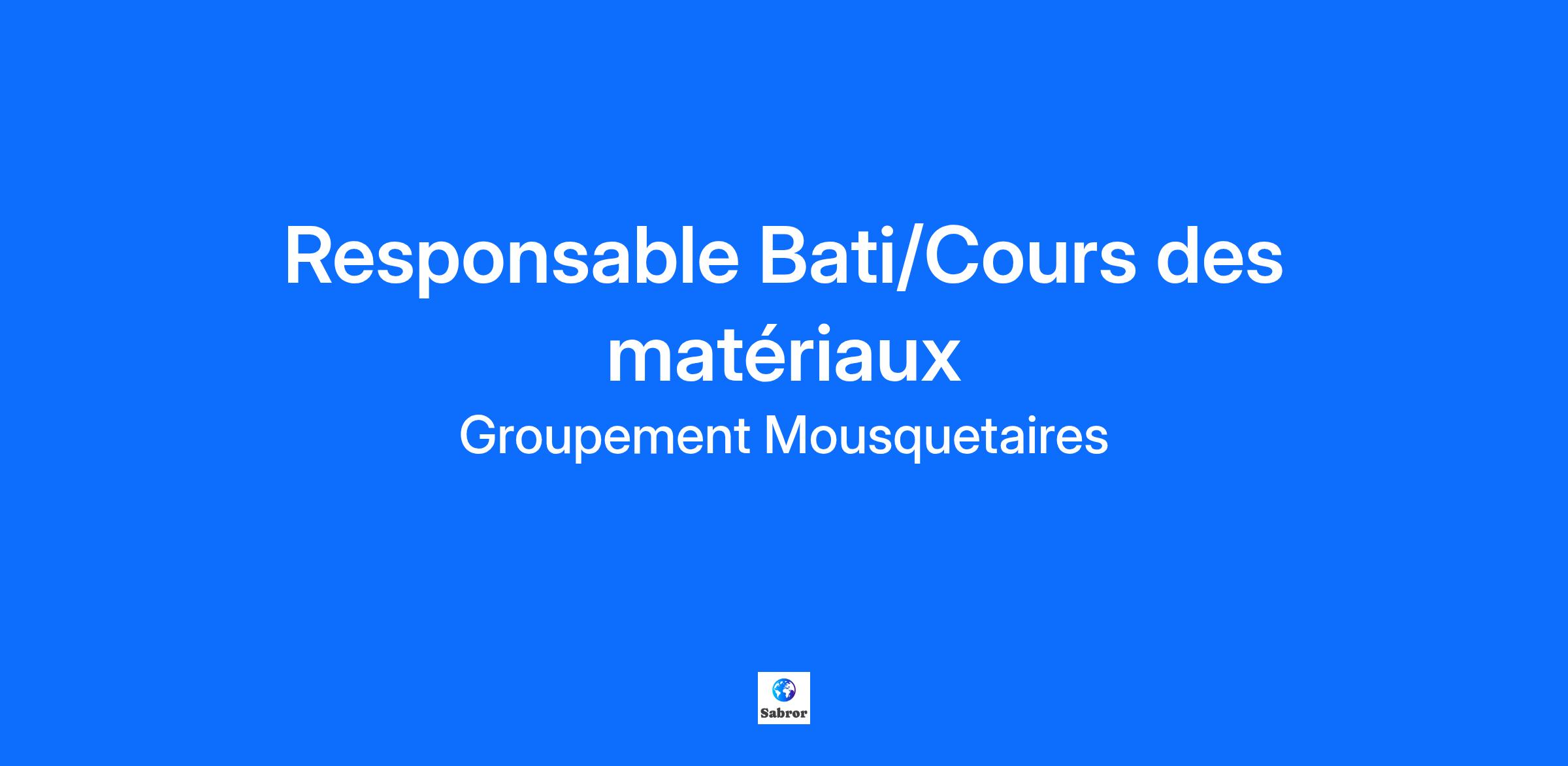 Description de l'entreprise Rejoindre le Groupement Mousquetaires, c’est intégrer un acteur majeur de la grande distribution avec 7 enseignes. C’est aussi évoluer au sein d’un groupe singulier, présent sur 3 marchés (alimentaire, bricolage, mobilité), qui réunit 150 000 collaborateurs et compte plus de 3 000 chefs d’entreprise ! Bricomarché, forcément tout le monde connait ! Normal en tant qu’enseigne de bricolage historique du Groupement Mousquetaires et 3ème enseigne française dans sa catégorie. Qu’ils soient jardinier débutant ou bricoleur averti, particuliers et professionnels poussent chaque jour la porte d’un de nos points de vente pour se faire conseiller par nos spécialistes. Alors, prêt à rejoindre la TribuBrico ? Ça tombe bien, notre point de vente souhaite agrandir sa tribu ! Description du poste Responsable de la cours des matériaux, vous assurez les négociations et les commandes chez les fournisseurs.Vous participez au remplissage et à l'agencement du parc ainsi qu'au service clients,Vous êtes conseillé technique pour les clients et vos collaborateurs.Vous êtes garant de la bonne tenue du parc. Gestion d'une équipe de 2- 3 personnes.Vous pilotez votre activité et êtes garant de la rentabilité de votre secteur à l'aide des leviers que sont l'animation commerciale,les choix de mise en avant des produits, le merchandising, la gestion des stocks ou les négociations fournisseurs. Qualifications Expérience Requise : Confirmé Expérience obligatoire dans l'univers du bâtiment ,dans le négoce en matériaux ou grande surface de bricolage.