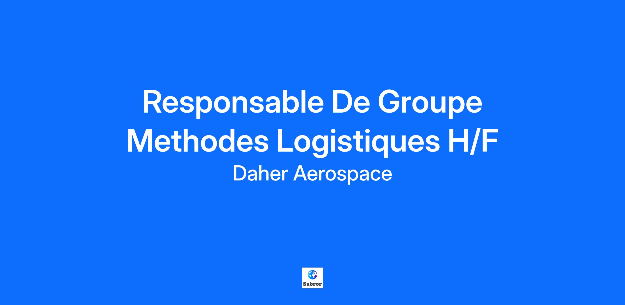 RESPONSABLE DE GROUPE METHODES LOGISTIQUES H/FType de contrat