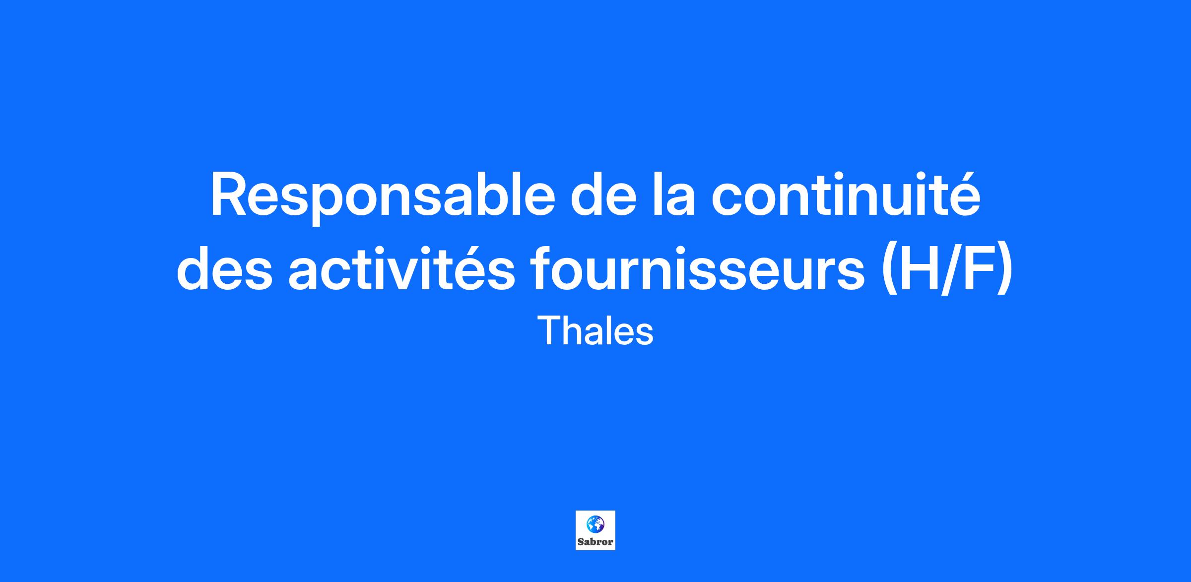 Lieu : Vélizy-Villacoublay, France Construisons ensemble un avenir de confiance Thales est un leader mondial des hautes technologies spécialisé dans trois secteurs d’activité : Défense & Sécurité, Aéronautique & Spatial, et Cyber & Digital. Il développe des produits et solutions qui contribuent à un monde plus sûr, plus respectueux de l’environnement et plus inclusif. Le Groupe investit près de 4 milliards d’euros par an en Recherche & Développement, notamment dans des domaines clés de l’innovation tels que l’IA, la cybersécurité, le quantique, les technologies du cloud et la 6G. Thales compte près de 81 000 collaborateurs dans 68 pays. Nos engagements, vos avantages Une réussite portée par notre excellence technologique, votre expérience et notre ambition partagée Un package de rémunération attractif Un développement des compétences en continu : parcours de formation, académies et communautés internes Un environnement inclusif, bienveillant et respectant l’équilibre des collaborateurs Un engagement sociétal et environnemental reconnu Votre quotidien Rejoignez-nous sur le campus Vélizy qui héberge une grande diversité d’activités Thales, aéro, défense, civile,... A l'ouest de Paris, ce site offre un environnement de travail équipé des dernières innovations technologiques et propose des services permettant de concilier vie professionnelle et personnelle. Vos missions: En tant que Business Continuity Manager vous serez en charge de: Définir et piloter le process de collecte et d’évaluation des plans de continuité d’activité (PCA) fournisseurs, incluant la consolidation des RTO (Recovery Time Objectives ) et MAO (Maximum Acceptable Outage) Évaluer la maturité des PCA et challenger leur viabilité au regard des besoins des entités Thales, Piloter les programmes de prévention et d’audit liés aux risques industriels (incendie, explosion, bris de machine) et naturels (inondation, séisme, etc.), Coordonner les initiatives transverses avec les partenaires experts, les assureurs et les donneurs d’ordres, Développer et animer les formations dédiées aux PCA, aux risques industriels et naturels, Définir et suivre les indicateurs de performance (KPIs) et les plans d’actions associés, Contribuer à la gestion de crises et aux projets transverses liés à la gestion globales de risques. Votre profil: - Votre priorité est de sécuriser et renforcer la résilience des chaînes d’approvisionnement ? - Vous avez l’ambition de piloter des projets stratégiques dans un environnement international complexe ? - Vous avez envie de travailler au cœur des enjeux de continuité et de gestion des risques fournisseurs ? Vous disposez d’un diplôme d’ingénieur ou équivalent et avez de l’expérience sur : • la gestion des risques et des plans de continuité d’activité, • la conduite de projets transverses complexes, • la coordination internationale entre équipes Achats, Supply Chain et Assurance, • l’élaboration et le suivi d’indicateurs de performance (KPI). La rigueur, l'esprit d’analyse, la capacité d’influence, la coopération et le sens des priorités sont des atouts que l’on vous reconnaît? Alors ce poste est fait pour vous Thales, entreprise Handi-Engagée, reconnait tous les talents. La diversité est notre meilleur atout. Postulez et rejoignez nous ! Interested in finding out more about Thales and why you should join us? Say HI* to new career opportunities.