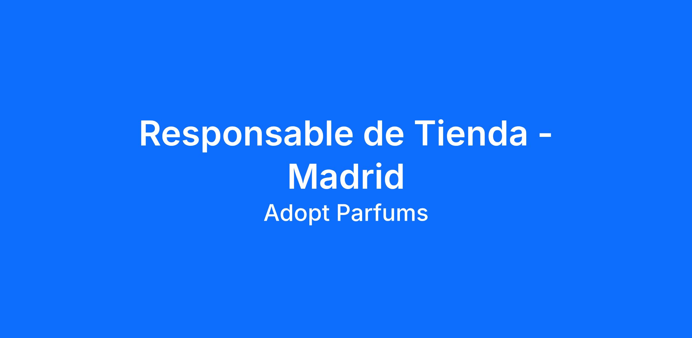 Adopt Parfums continúa su conquista y se desarrolla en España. En el marco de varias aperturas, estamos reclutando un Responsable de Tienda para Madrid.
