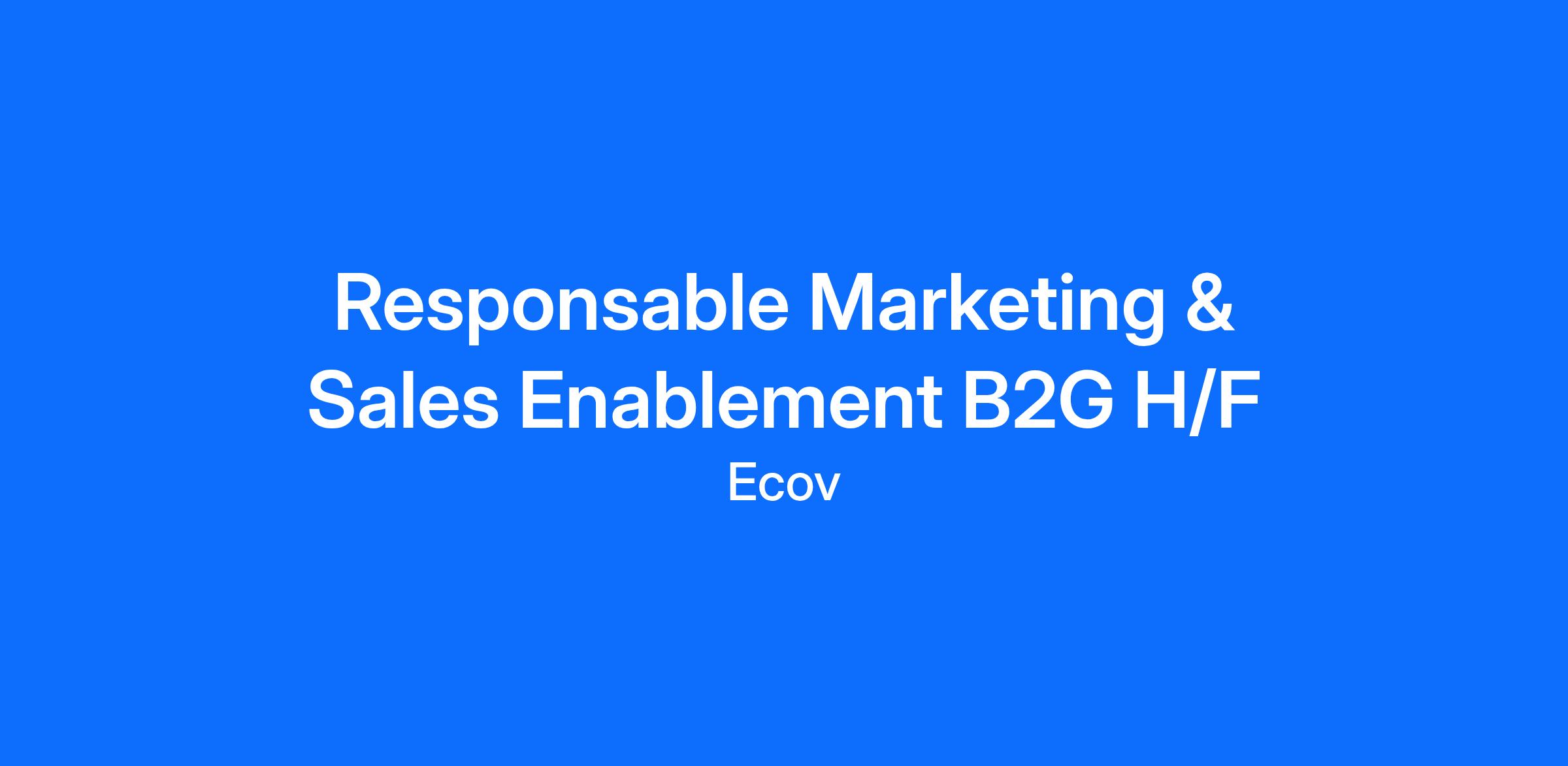 Dans le cadre de la structuration du marketing B2G pour soutenir sa croissance commerciale, Ecov, start-up à impact porteuse d’un nouveau service public “partagé” (co-produit par ses usagers), recherche un·e Responsable Marketing & Sales Enablement B2G.