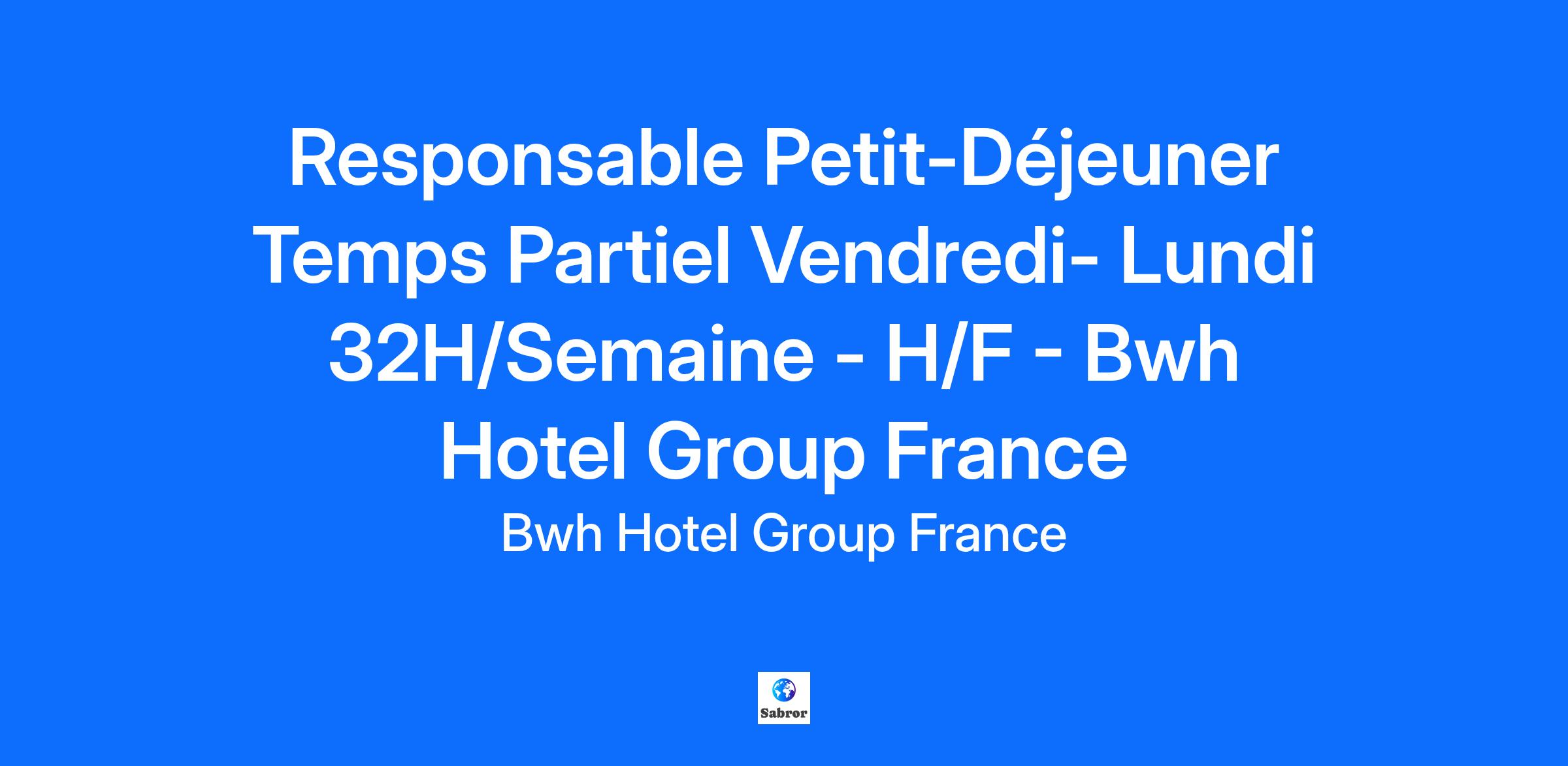Nous recherchons un/e Responsable du service PETIT-DEJEUNER - 4 jours par semaine du vendredi à lundi inclus (mardi-mercredi-jeudi de repos)- 32h/ semaine - temps partiel.
