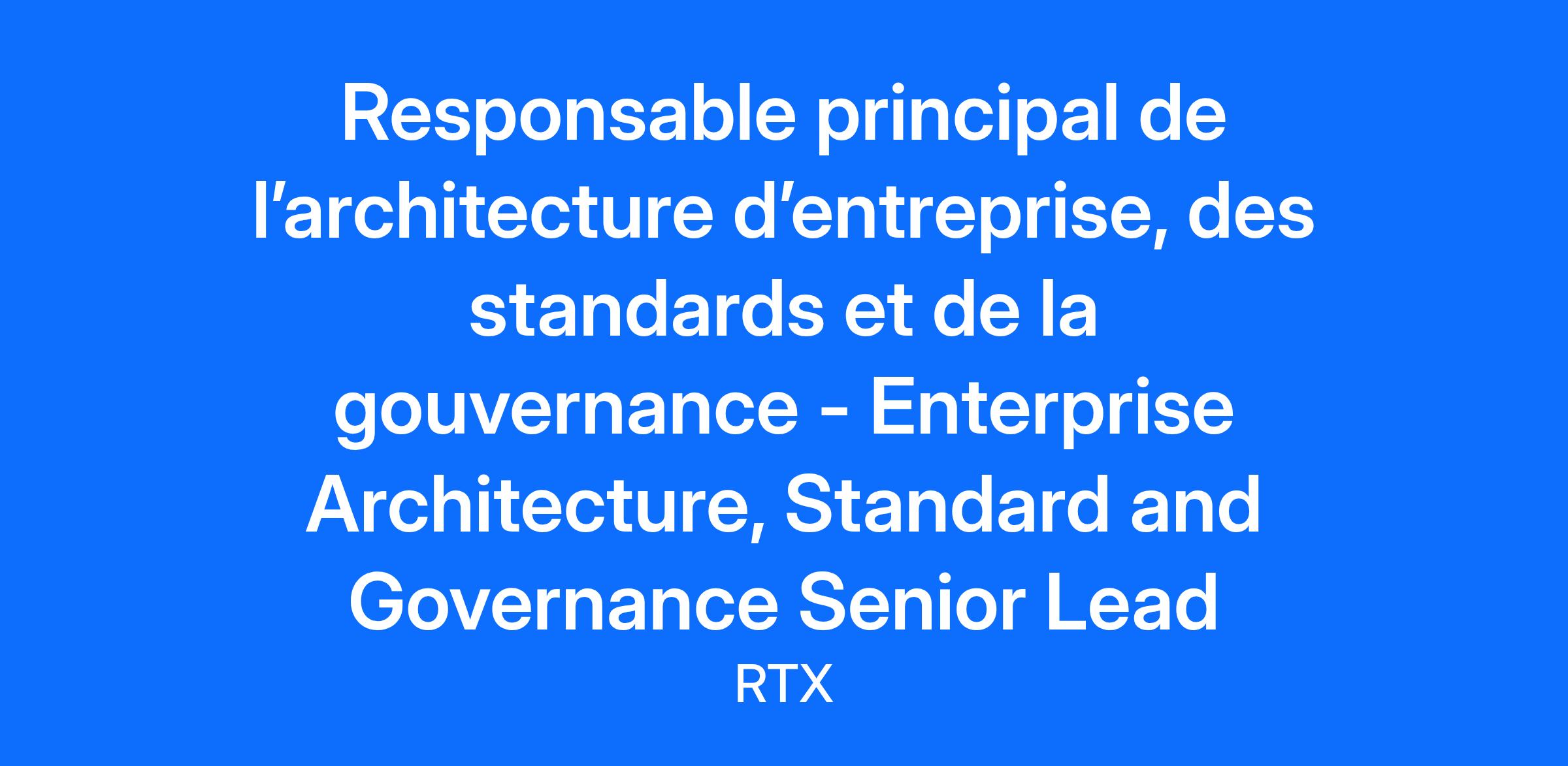 Date d’affichage / Date Posted: 2025-06-17 Pays / Country: Canada Emplacement / Location: RQC99: PWC Remote, Quebec Titre du poste: Responsable principal de l’architecture d’entreprise, des standards et de la gouvernance À propos de Pratt & Whitney Canada Pratt & Whitney Canada (P&WC) est un leader mondial de l’industrie aérospatiale établi à Longueuil, au Québec. Nous fabriquons des moteurs de nouvelle génération qui équipent la plus grande flotte d’avions et d’hélicoptères au monde dans les segments de l’aviation d’affaires, de l’aviation générale et de l’aviation régionale. En près de 100 ans, nous avons réalisé de nombreuses percées dans le développement de moteurs qui assurent le transport de marchandises et de matériel, luttent contre les feux de forêt et effectuent le transport de passagers. Un employeur de choix Pratt & Whitney Canada a été reconnue comme l'un des 10 meilleurs employeurs au Canada en 2025 selon Forbes, en plus d’être classé au premier rang des employeurs dans l'industrie de l'aérospatiale et de la défense au pays! Notre siège social figure sur le palmarès des meilleurs employeurs dans la région de Montréal. Ensemble, ces distinctions confirment notre réputation d'employeur de choix dans la région de Montréal, au Canada et dans le monde. Pourquoi rejoindre l’équipe? Ce poste est responsable de la direction de la fonction Normes et Gouvernance au sein de l’Architecture d’Entreprise (EA). Il agit en tant que leader clé de l’organisation EA, avec pour mission de faire évoluer la pratique de l’EA chez P&W, de développer des stratégies technologiques à long terme et de promouvoir la gouvernance et la standardisation. Ce poste est à temps plein, du lundi au vendredi, avec horaires flexibles à Longueuil, et s’effectue exclusivement en télétravail. À quoi ressemblera votre quotidien? Développer et mettre en œuvre une approche d’architecture solide et, en collaboration avec le responsable de la stratégie d’architecture, veiller à ce que l’EA apporte le soutien nécessaire aux principales parties prenantes de P&W. Diriger une équipe d’architectes d’entreprise (EA) chargés d’élaborer des architectures de référence, des normes technologiques et des lignes directrices pour toutes les entités de P&W, avec un accent sur les approches basées sur les modèles, diriger le processus mondial du comité d’examen d’architecture (Architecture Review Board), et s’assurer que toutes les équipes de P&W comprennent la valeur et l’approche globale de l’EA. Prendre en charge le processus de gouvernance de l’architecture et garantir que les livrables architecturaux répondent aux objectifs de P&W, en fournissant aux équipes des directives claires pour offrir des solutions à valeur ajoutée. Offrir un leadership fort, orienter techniquement les équipes technologiques et métier, et conseiller les parties prenantes sur la base des standards d’entreprise. Collaborer étroitement avec toutes les parties prenantes de Pratt & Whitney pour garantir que la pratique EA réponde aux besoins de l’entreprise. Agir en tant que leader d’opinion à travers toutes les plateformes technologiques de P&W (ex. : ERP, CRM, PLM, MES, commerce électronique, gestion du cycle de vie des contrats, plateforme de données clients, etc.) et fournir des conseils à l’échelle mondiale sur les meilleures pratiques du secteur en matière d’architecture. Démontrer une expérience en cartographie des processus, en architecture et en optimisation dans le cadre de la transformation numérique d'organisations industrielles, manufacturières ou du secteur aérospatial/défense (A&D). Qu'est-ce qu'il vous faut pour réussir? Baccalauréat en génie, informatique, technologies de l’information ou systèmes d’information, avec 12+ années d’expérience en TI, dont 8+ années en tant qu’architecte de solutions senior pour des systèmes majeurs et/ou architecte d’entreprise, avec mise en œuvre de technologies à grande échelle, et 6+ années comme architecte d’affaires/de processus/technologique à l’échelle de l’entreprise ; OU Diplôme d’études supérieures (maîtrise ou plus) en génie, informatique, technologies de l’information ou systèmes d’information, avec 10+ années d’expérience en TI, dont 8+ années comme architecte de solutions senior ou architecte d’entreprise, et 6+ années comme architecte à l’échelle de l’entreprise. Expérience dans la mise en place de processus et de pratiques d’architecture à l’échelle mondiale, y compris la documentation ou la création de normes et de mécanismes de gouvernance. Connaissance et expérience de travail au sein d’équipes Agile/Scrum, y compris les mêlées quotidiennes (stand-ups), rétrospectives et revues. Maîtrise des cadres modernes d’architecture soutenant efficacement la livraison de pipelines DevSecOps. Capacité à fournir un leadership technique stratégique et à influencer la création de feuilles de route à long terme (3 ans ou plus) dans un environnement virtuel. Excellentes compétences en communication écrite et orale, avec une capacité à produire des documents d’affaires clairs et concis, et à formuler des recommandations pertinentes. Expérience démontrée dans des environnements complexes, orientés service et soumis à des délais serrés. Aptitude à bâtir des relations solides et à mobiliser les informations issues de différents groupes. Fort leadership personnel, excellentes capacités d’organisation, de négociation et de développement de relations. Maîtrise des présentations formelles et informelles. Esprit d’initiative, assurance, enthousiasme, orientation client marquée, avec un historique de constitution d’équipes performantes et de développement des talents. Aptitude à diriger les équipes dans des périodes de changement ou d’incertitude avec une attitud