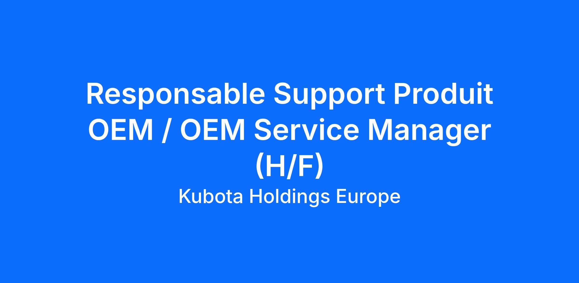 Kubota Europe is strengthening its Product team and is looking for an OEM Service Manager to act as the technical interface between Kubota, its sales subsidiaries, and OEM suppliers.