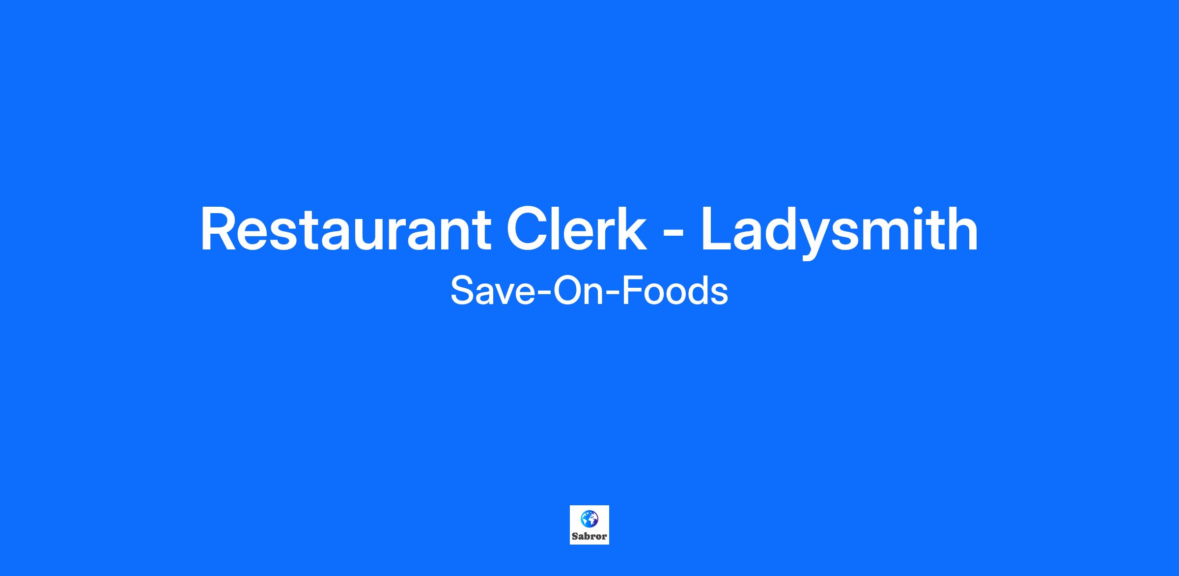 Restaurant Clerk - Ladysmith
