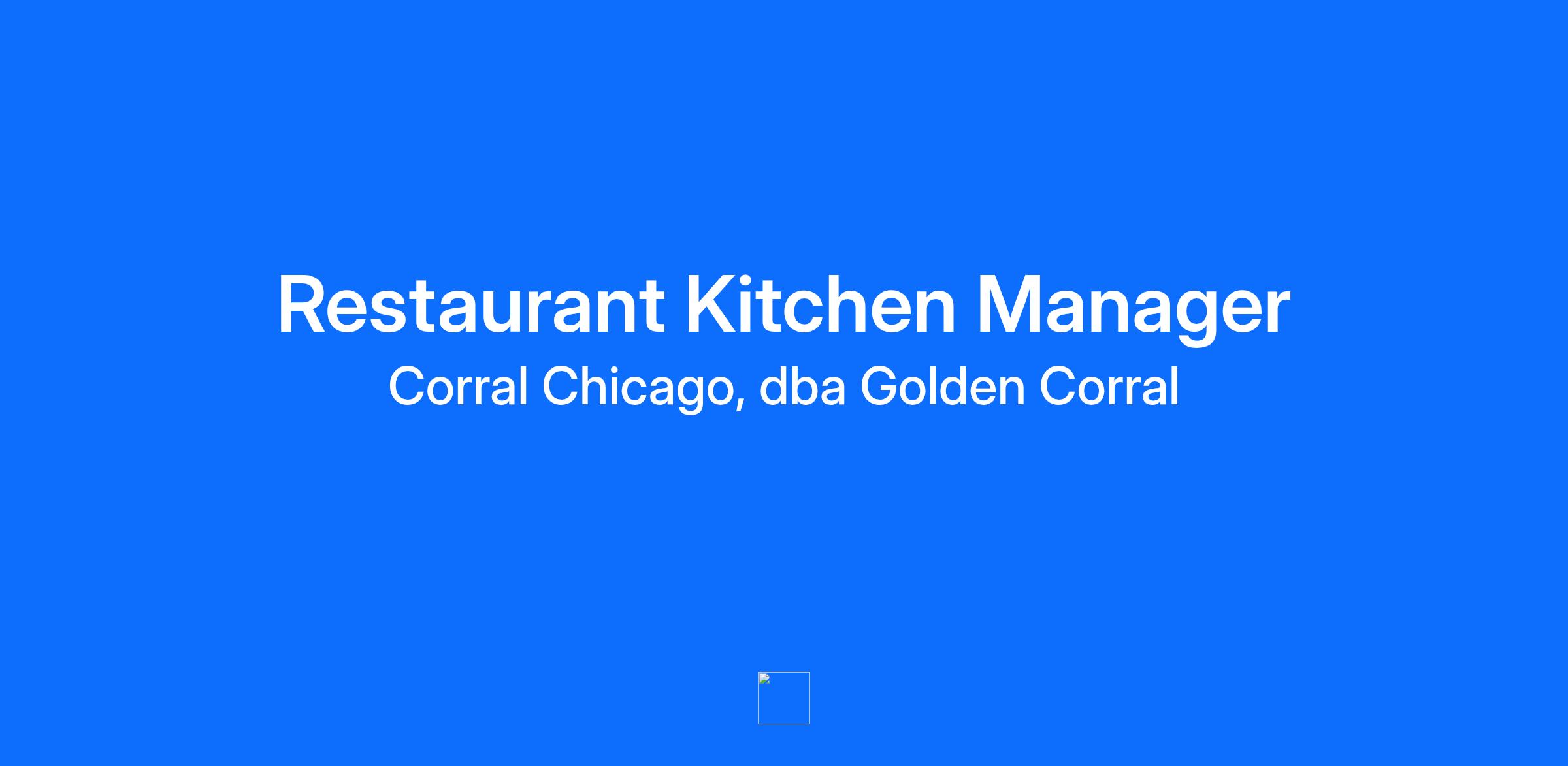 Our franchise organization, Corral Chicago, dba Golden Corral, is currently seeking energetic, friendly individuals to join our team! At Golden Corral®, we know that successful people are the foundation of our very successful company. We hire managers with the talent, integrity, and passion to promote our Caring Culture. We provide an environment that supports and empowers our people – not only to exceed our guests' expectations, but also to achieve their professional and personal goals. Talent, Focus, Commitment, Passion - These are just a few of the traits our most accomplished managers have in common. At Golden Corral, your ability to succeed is limited only by your energy and drive. Unequalled opportunity at the best chain restaurant company in the country! In this role as Kitchen Manager, you are responsible for food production and operating the Back-of-the-House using Golden Corral products, recipes, procedures and company systems to ensure that the standards for quality food, recipes, and cleanliness are achieved for our guests. As a member of the restaurant operations management team, you are also responsible for the restaurant’s overall operations, including food quality, production, safety, and labor in absence of the General Manager and Hospitality Manager. Requirements: Strong, stable work history along with management experience in a high-volume, casual dining or family-style restaurant. Education and training normally associated with college coursework in business or hospitality. Successful completion Golden Corral's comprehensive management training program. Position requires a valid driver’s license and an acceptable driving record. Thank you for your interest in Golden Corral. Our commitment to valuing diversity helps create an environment where everyone can be successful. Upon completion of your online application, you may be directed to complete an additional online questionnaire that is specific to the position in which you are applying. The job opening listed on this page has been posted by an independent franchisee of Golden Corral Corporation. Golden Corral Corporation does not hire or employ any individuals at this franchise location. The franchisee will make all decisions with respect to applications for the position listed on this page. The name of the franchisee appears in this job posting. All questions concerning this job opportunity should be directed to the franchisee. This franchise is independently owned and operated by a franchisee. Your application will go directly to the franchisee, and all hiring decisions will be made by the management of this franchisee. All inquiries about employment at this franchisee should be made directly to the franchise location, and not to Golden Corral Corporate.