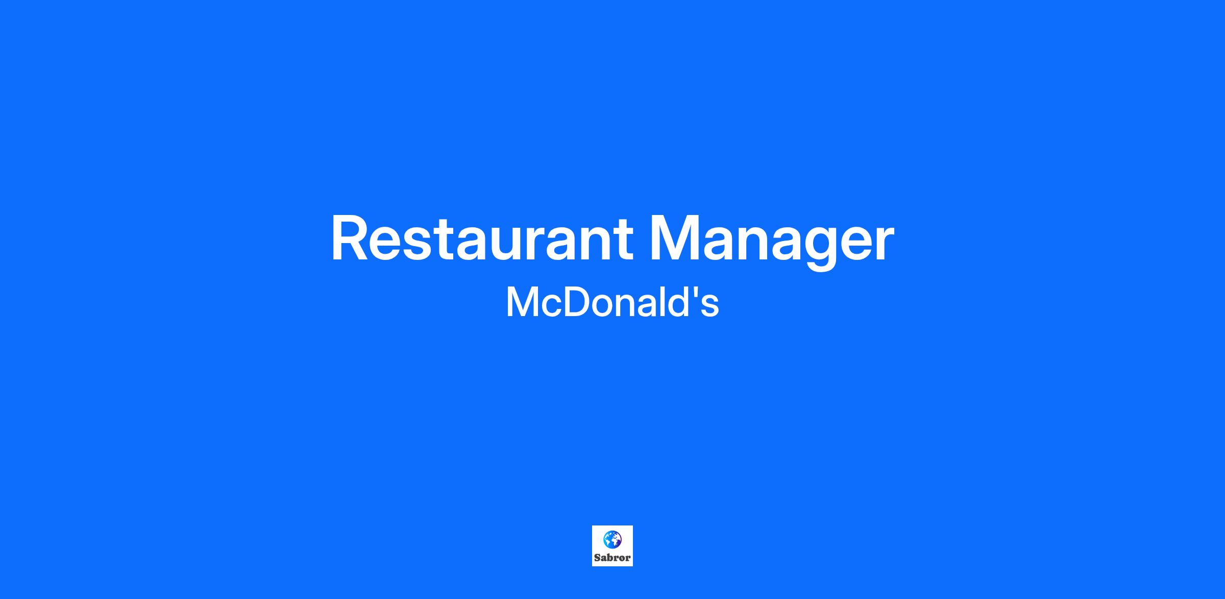 Restaurant Manager - Annual salary of $60 000 Performance bonus program We are more than just your local restaurant. We are a collection of hardworking small-business owners. Did you know that from coast to coast, we serve delicious choices to more than 2.5 million people in over 1,400 locations every day, or that we have proudly helped more than 387,000 Canadian families with sick children through Ronald McDonald House Charities? Our offer Working with us means that you will have the opportunity to earn and learn, flexibility, and a safe and inclusive work environment. What this means in practice is: Access to education and skills development opportunities that take you further A total rewards package that includes discounts, incentives, and recognition perks Flexible hours/shifts that suit your needs A safe, respectful and inclusive workplace Bring your authentic self to work – welcoming people of every age, background, and culture – just like the guests who visit our restaurants every day The job Manager / Restaurant Manager : The General Manager (GG) is responsible for the restaurant's sales growth and customer base profitability as well as ensuring the restaurant meets McDonald's high standards for quality, service and cleanliness. The General Manager models exemplary customer experience behaviors. The General Manager works with the Manager reporting to him to establish the restaurant's targets for growth and put in place a plan to achieve those targets. The general manager does not work alone; he manages a team of department managers who hold specific responsibilities within the restaurant. This means supporting department managers in setting their personal targets, tracking their progress, and providing coaching and guidance to improve their department's results. By improving departmental results, we improve restaurant results. The General Manager is responsible for energizing team members and managers. This includes hiring and training each manager to ensure a winning team is in place in the restaurant for the future. Performance measures : Review restaurant newsletter to determine relevant annual performance measures. These measures are, but not limited to: Growth in sales/number of customers Growth of peak periods General performance of the pastry and order terminals Effectiveness of customer number forecasts Restaurant profits Staffing levels (management team and team members) P.A.E.R. Brand Standards Visit Notes General SSC Notes Team turnover rate over 90 days and general turnover rate Development of members of the management team Integration of team members and follow-up after 60 days Management team turnover rate The candidate must have: Experience, 2 years minimum in fast food. Sense of responsibility Must be customer focused Aim for excellence Have a positive attitude Must be reliable Have an excellent sense of leadership Having good communication skills Be motivating and energetic Prioritize teamwork *Experience at McDonald's: is an asset. Additional Benefits: Full-time jobs with a flexible schedule that meets your needs; A competitive starting salary with regular salary increases based on performance; Access to benefits, such as medical, dental and life insurance The chance to learn cutting-edge business skills through our world-class training and development programs; Bonus program Reimbursement of mileage Cellular allowance Complete management training program Merits and recognition of service Discount program Free uniforms Your vibe and experience While previous experience working in food service or retail as a barista, server, sales associate, cashier, team member, or customer sales representative as a manager is always helpful and appreciated, what is most important is who you are. You lead by example and are accountable. You have high expectations and consistently raise the bar for yourself and your team. When confronted with a situation, you can assess and problem-solve with confidence. You put people before profit, knowing that creating a positive culture leads to happier, more engaged staff who will deliver a better experience for your guests. About us In 1954, an enterprising salesman named Ray Kroc discovered a small burger restaurant in California, and wrote the first page of McDonald’s history. In 1967, the first McDonald’s Canada opened in Richmond, B.C. and we’ve been growing with our communities and serving quality food at great a value ever since. Today, McDonald’s Canada is proud to be one of the world’s leading foodservice retailers, offering job opportunities at corporate-owned restaurants or restaurants owned by independent franchisees. McDonald’s Canada and Owner/Operators are committed to a diverse and inclusive workplace for all. Our workplaces have a long-standing policy of providing fair, equitable, and accessible opportunities for all employees and prospective employees. Accommodations during the application process are available upon request.