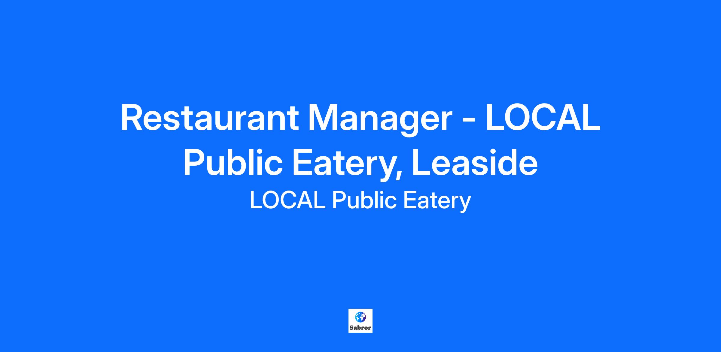 Restaurant Manager - LOCAL Public Eatery, Leaside