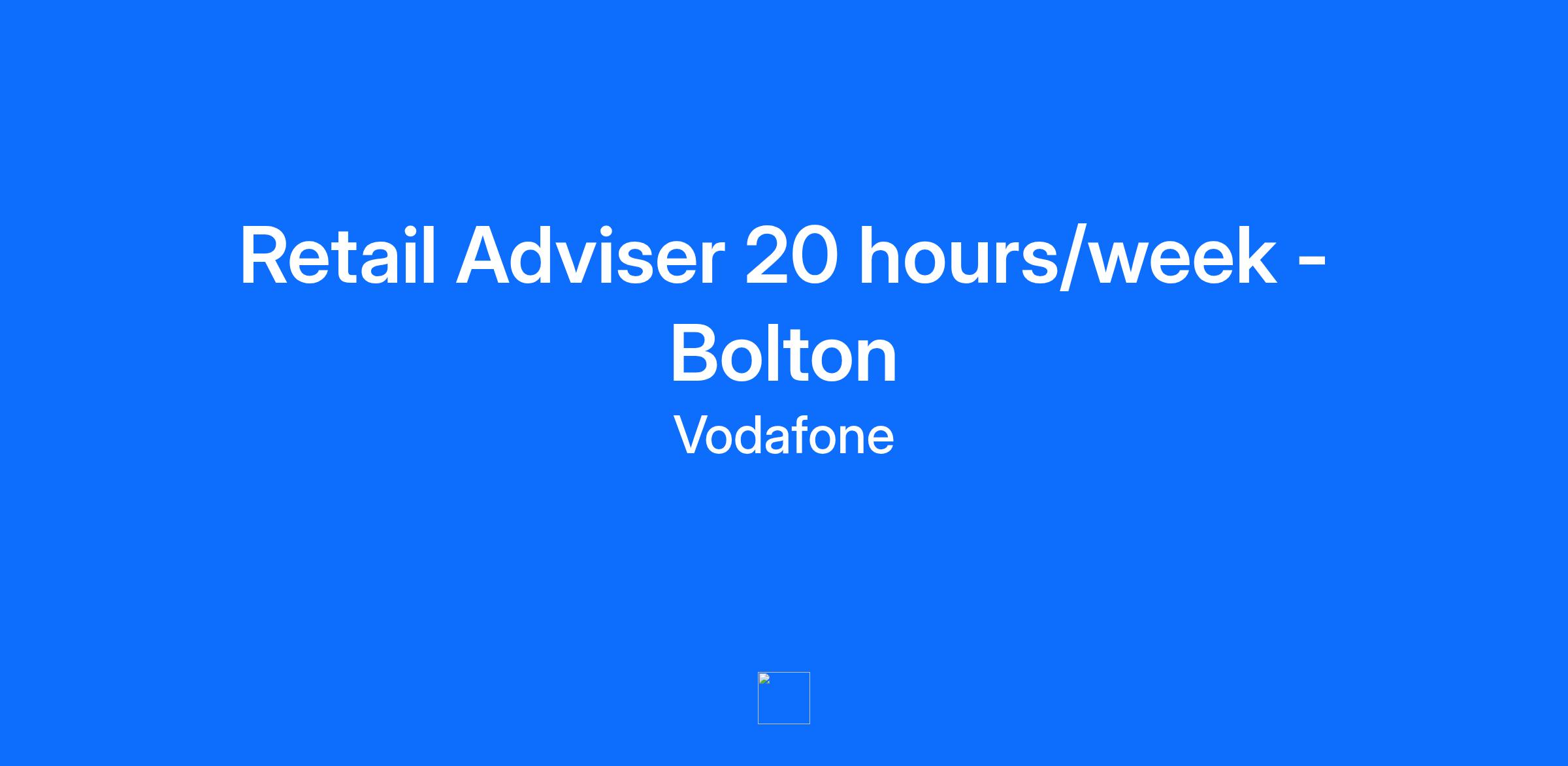 Location: Bolton Salary: £ 12.60 per hour + uncapped commission Hours: 20 hours per week Do you want the chance to build a career in retail? Our Vodafone Partner stores are independent franchises that provide you with the opportunity to develop and contribute to a growing local business. Please note if your application is successful your personal details and application will be shared with our Franchise Partner. What will you be doing? We are seeking a motivated and sales-oriented Retail Adviser to join our growing team in our Vodafone Bolton Partner store. In this role, you will interact directly with customers, understand their needs, build trust and create a personal experience to be remembered. You will also do your utmost to help resolve any issues a customer may have, right there, right then. Who are we looking for? We are looking for people who are level-headed, have a mature mind-set, combined with enthusiasm, energy, and drive. It can be a demanding role and you’ll need to be able to commit to some weekend work as well as weekdays, but for the right person, it’s an amazing opportunity to work for one of the UK’s most valuable brands. What’s in it for you? This role offers a competitive salary, along with an uncapped commission scheme. You will get to work with a fun, diverse and driven team who love what they do and will inspire you to be your very best!