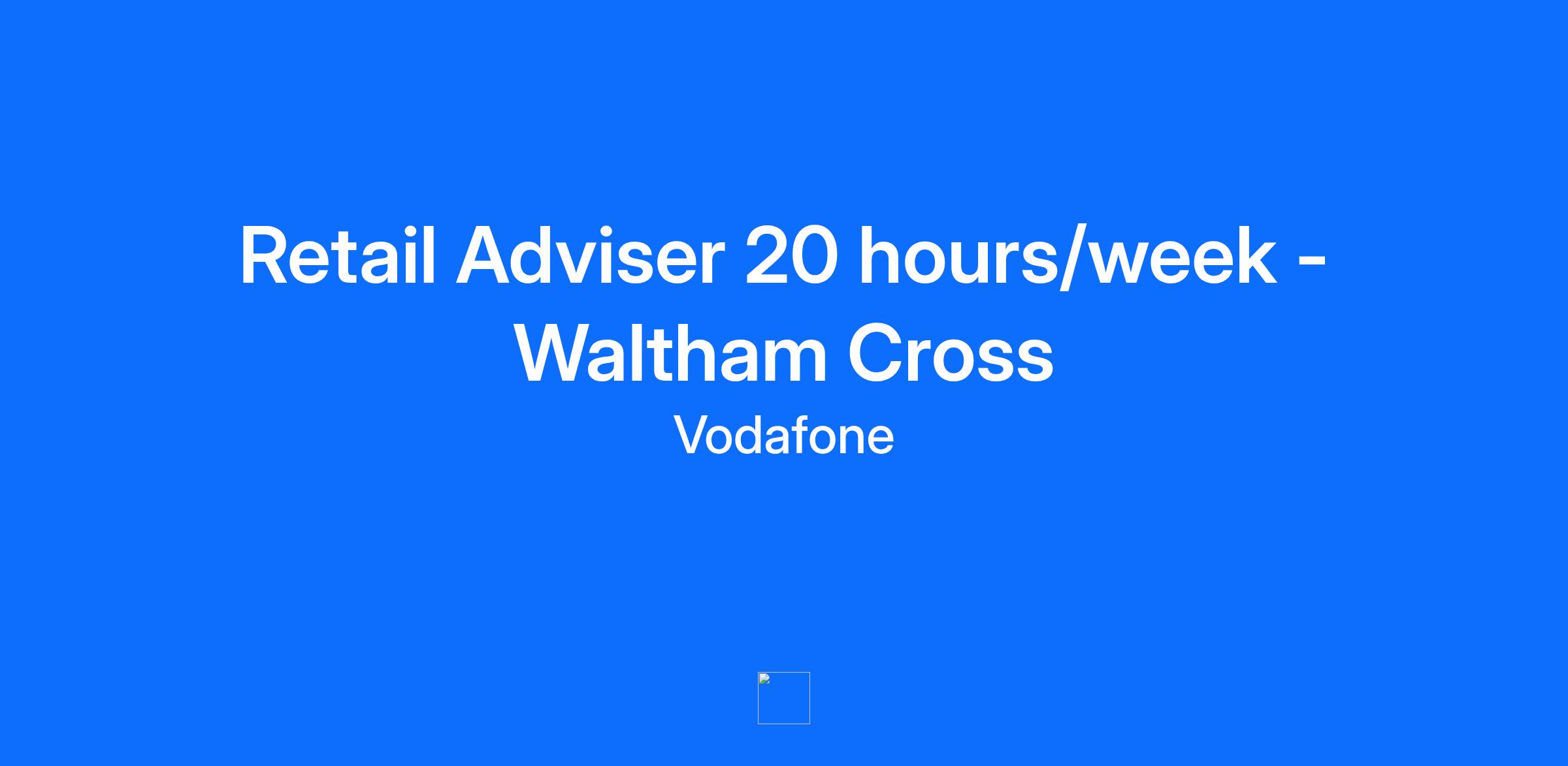 Location: Waltham Cross Salary: £ 12.60 per hour + uncapped bonus Hours: 20 hours per week Do you want the chance to build a career in retail? Our Vodafone Partner stores are independent franchises that provide you with the opportunity to develop and contribute to a growing local business. Please note if your application is successful your personal details and application will be shared with our Franchise Partner. What will you be doing? We are seeking a motivated and sales-oriented Retail Adviser to join our growing team in our Vodafone Waltham Cross Partner store. In this role, you will interact directly with customers, understand their needs, build trust and create a personal experience to be remembered. You will also do your utmost to help resolve any issues a customer may have, right there, right then. Who are we looking for? We are looking for people who are level-headed, have a mature mind-set, combined with enthusiasm, energy, and drive. It can be a demanding role and you’ll need to be able to commit to some weekend work as well as weekdays, but for the right person, it’s an amazing opportunity to work for one of the UK’s most valuable brands. What’s in it for you? This role offers a competitive salary, along with an uncapped bonus potential and other benefits. You will get to work with a fun, diverse and driven team who love what they do and will inspire you to be your very best!