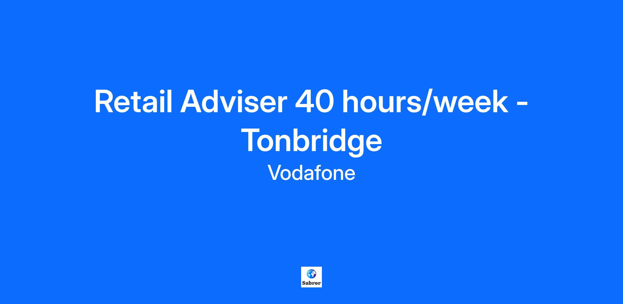 Location: Tonbridge Salary: £ 12.60 per hour + OTE Hours: 40 hours per week Do you want the chance to build a career in retail? Our Vodafone Partner stores are independent franchises that provide you with the opportunity to develop and contribute to a growing local business. Please note if your application is successful your personal details and application will be shared with our Franchise Partner. What will you be doing? We are seeking a motivated and sales-oriented Retail Adviser to join our growing team in our Vodafone Tonbridge Partner store. In this role, you will interact directly with customers, understand their needs, build trust and create a personal experience to be remembered. You will also do your utmost to help resolve any issues a customer may have, right there, right then. Who are we looking for? We are looking for people who are level-headed, have a mature mind-set, combined with enthusiasm, energy, and drive. It can be a demanding role and you'll need to be able to commit to some weekend work as well as weekdays, but for the right person, it's an amazing opportunity to work for one of the UK's most valuable brands. What's in it for you? This role offers a competitive salary. You will get to work with a fun, diverse and driven team who love what they do and will inspire you to be your very best!