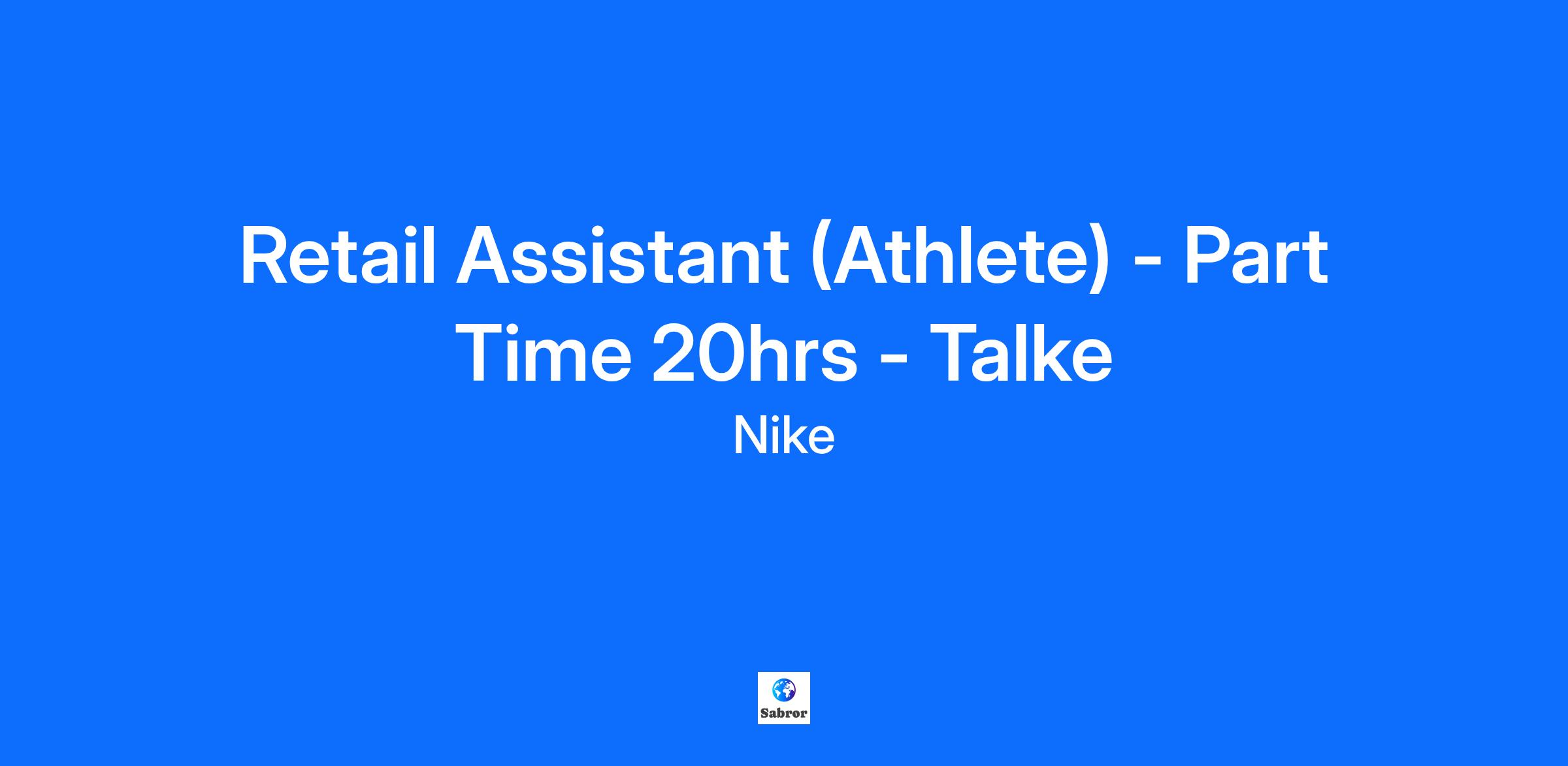 Nike Talke is looking for the next part-time (20 hours per week) Sales Assistant to join our team and provide world-class service to the consumer: What you bring: Using your expertise in the field of exceptional consumer service and product knowledge to serve and deliver a premium brand experience to our consumers.• Assisting our retail leads and floor managers (Coaches) in training new employees Supporting various store departments (e.g. operate cash register, manage incoming and outgoing goods, refill products on shopfloor, build visual displays) and recommending appropriate products to reach sales targets Using your knowledge for digital devices to create a bond between online and offline sales or services in the store Informing consumers and new teammates about the NIKE products and services Improving your own knowledge via our tools and training courses to stay up to date and to seek for more insights on sales trends, NIKE products, services, and culture What you get: One of the best compensation and benefits packages in the industry Opportunity for monthly performance-based bonus A supportive team that values Diversity, Equity & Inclusion A career at a company at the forefront of the sports and fashion industry Generous online and in-store employee discounts and a brand-new NIKE outfit for you to sport with your teammates on the sales floor. Qualifications Customer service and/or retail experience preferred. Effective communicator, brand ambassador, and collaborative teammate Demonstrated ability to apply product sales techniques. Flexible with scheduling and available to work retail hours, which may include day, evening, weekends, and/or holidays, based on department and store/company needs. Availability Must be available to work 20 hrs per week (full time) during store opening hours, including evenings and available Saturday & Sunday. Note relocation is not provided for this role Apply now online (it is recommended that you indicate your availability in your resume). We are waiting for you! At NIKE, Inc. we promise to provide a premium, inclusive, compelling and authentic candidate experience. Delivering on this promise means we allow you to be at your best — and to do that, you need to understand how the hiring process works. Transparency is key.