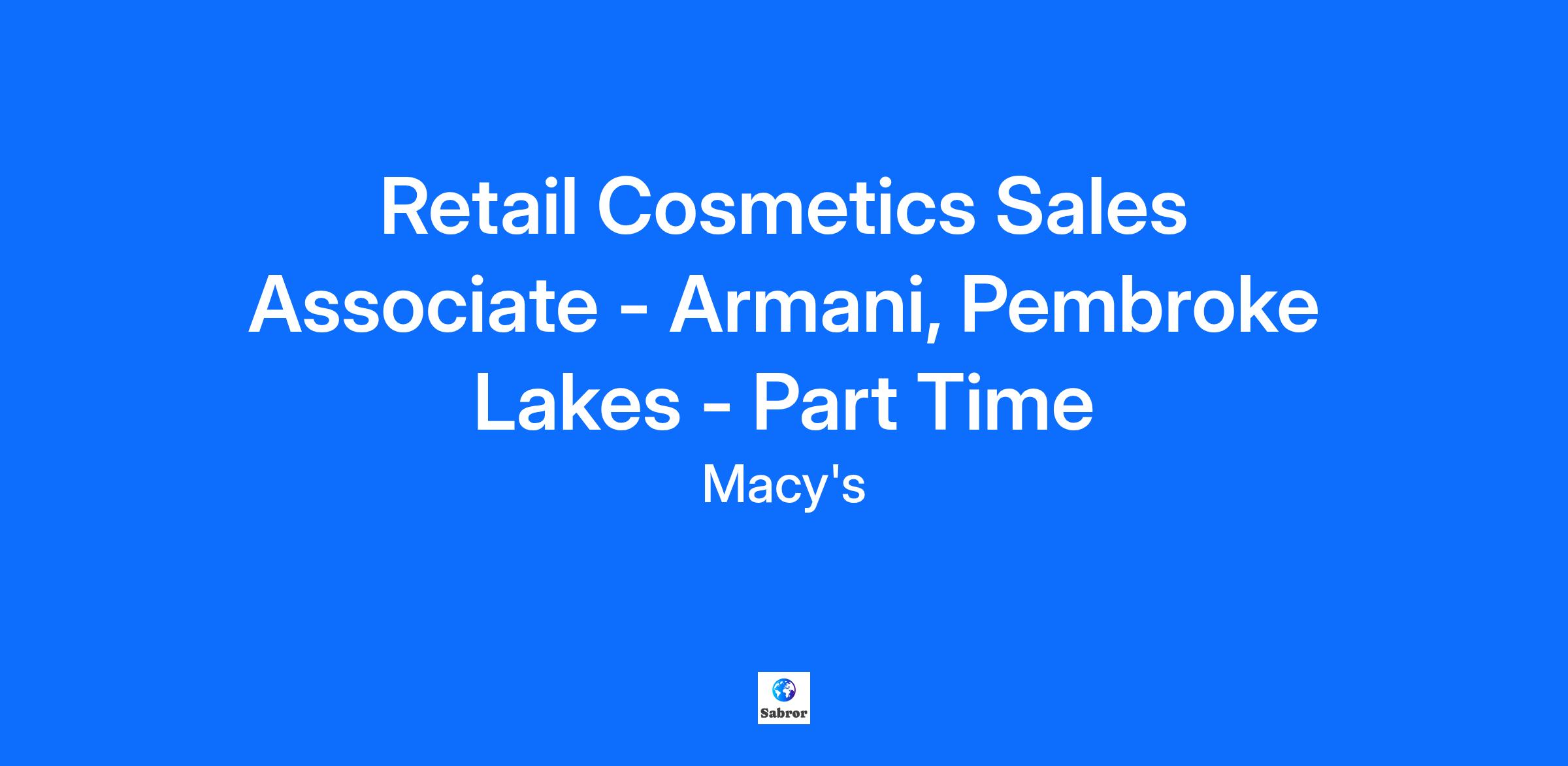 Retail Cosmetics Sales Associate - Armani, Pembroke Lakes - Part Time