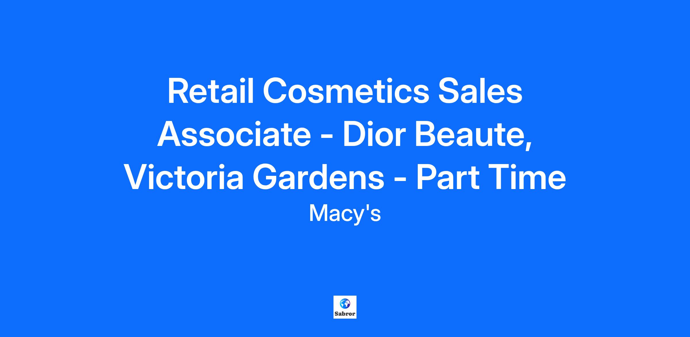Retail Cosmetics Sales Associate - Dior Beaute, Victoria Gardens - Part Time