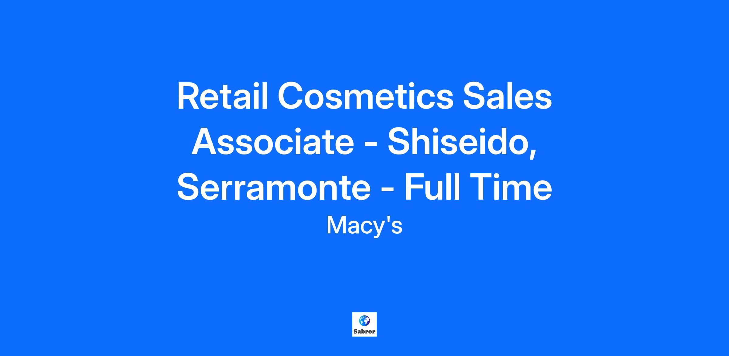 Retail Cosmetics Sales Associate - Shiseido, Serramonte - Full Time
