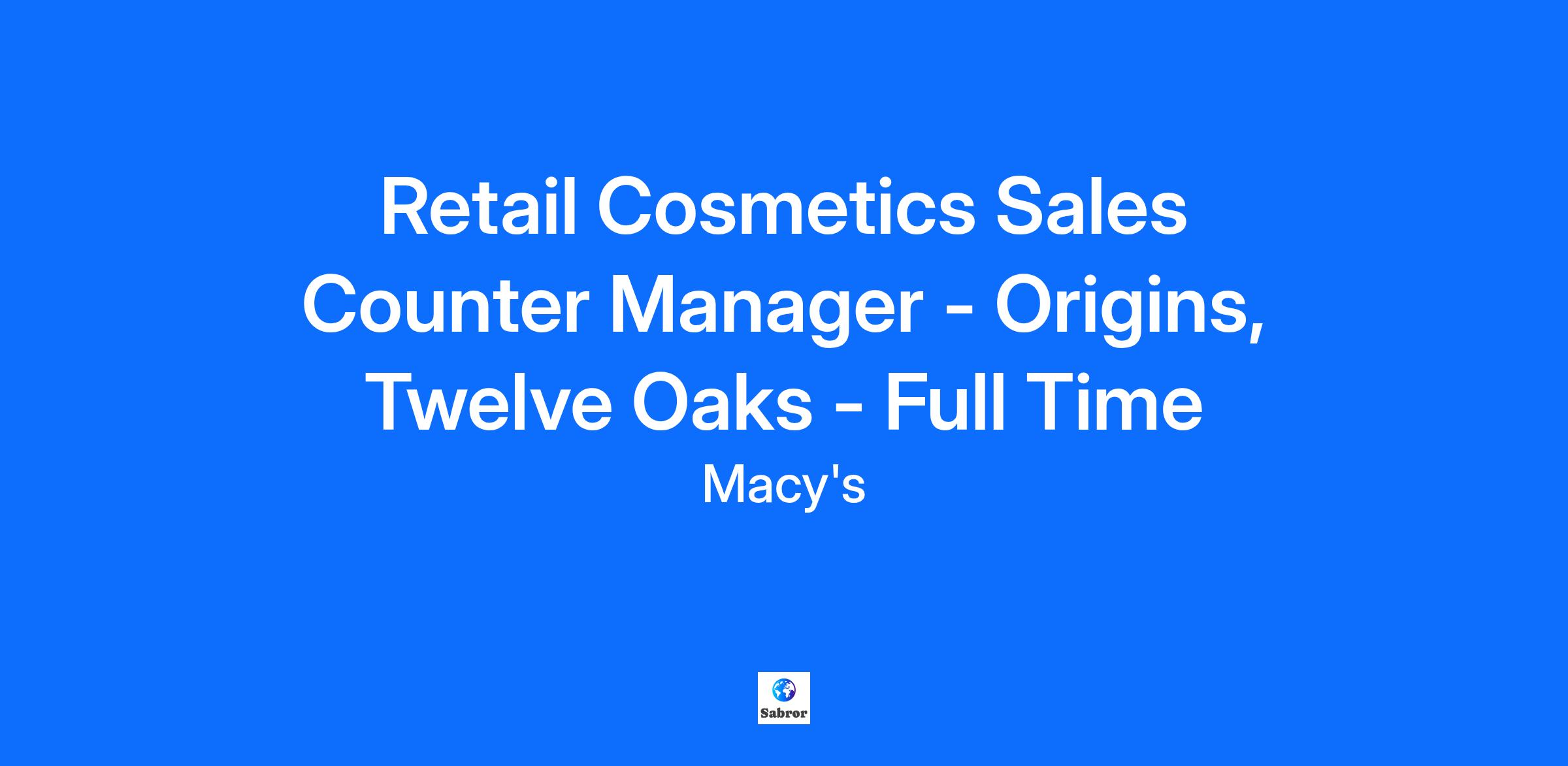 Retail Cosmetics Sales Counter Manager - Origins, Twelve Oaks - Full Time