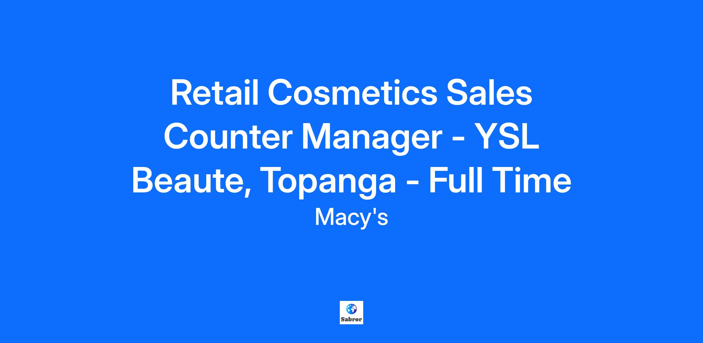 Retail Cosmetics Sales Counter Manager - YSL Beaute, Topanga - Full Time