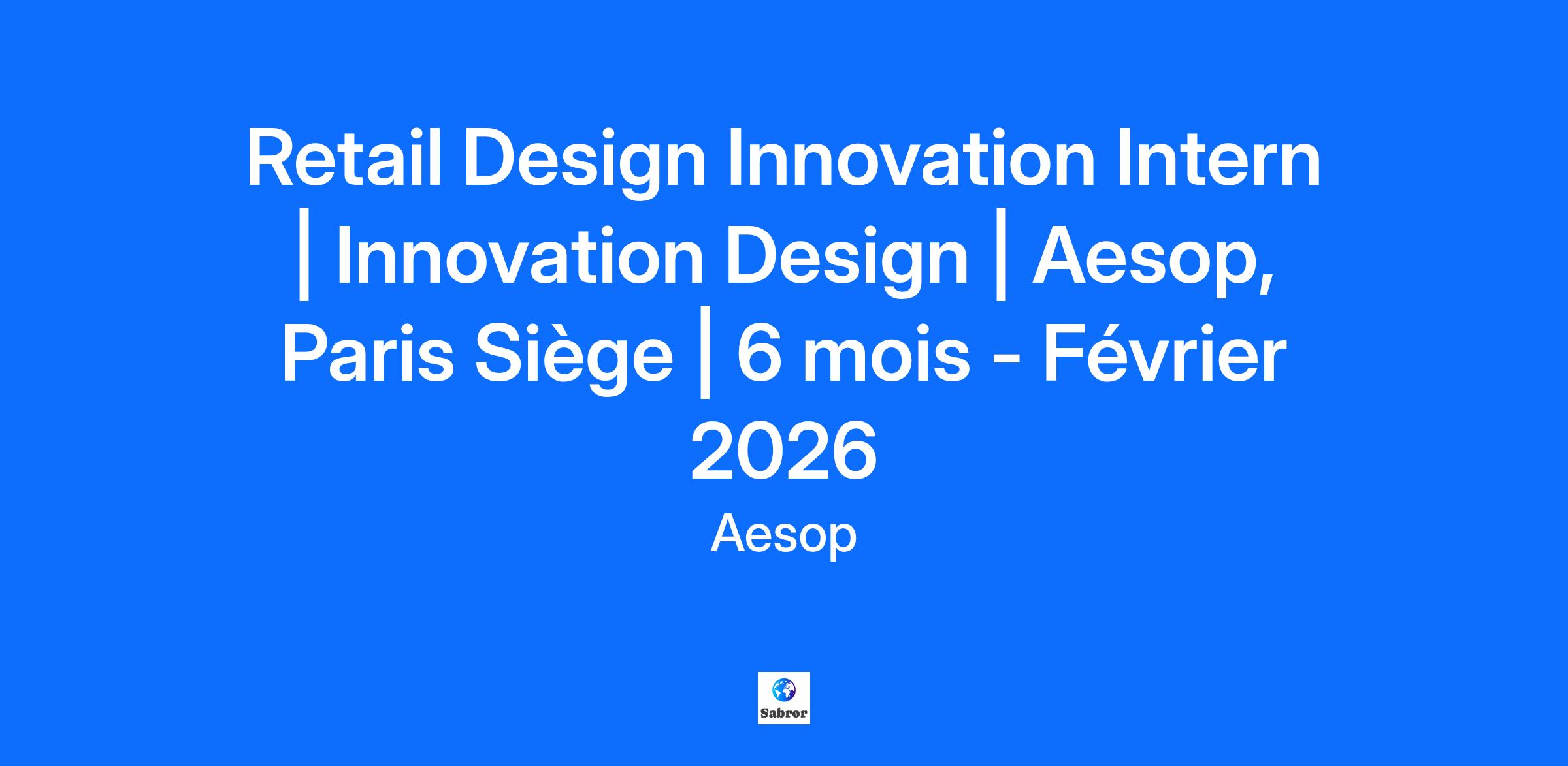 Retail Design Innovation Intern | Innovation Design | Aesop, Paris Siège | 6 mois - Février 2026