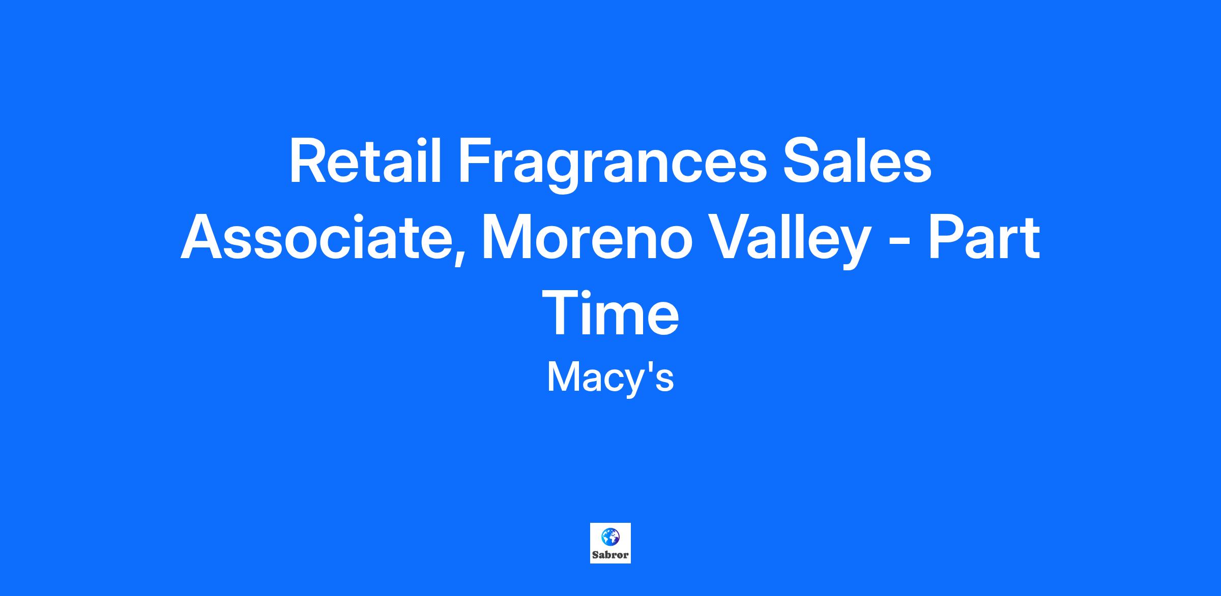 Retail Fragrances Sales Associate, Moreno Valley - Part Time