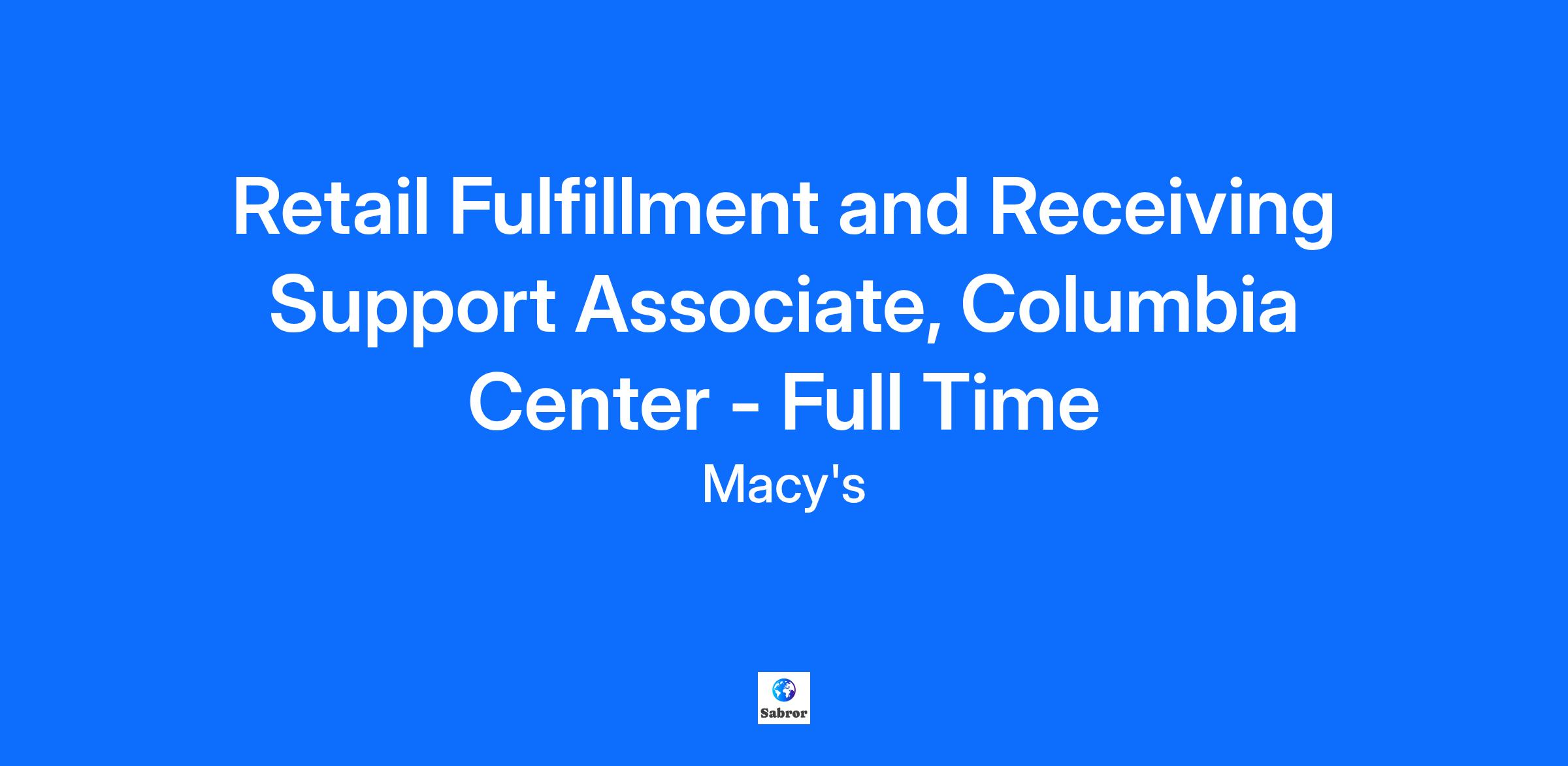 Retail Fulfillment and Receiving Support Associate, Columbia Center - Full Time