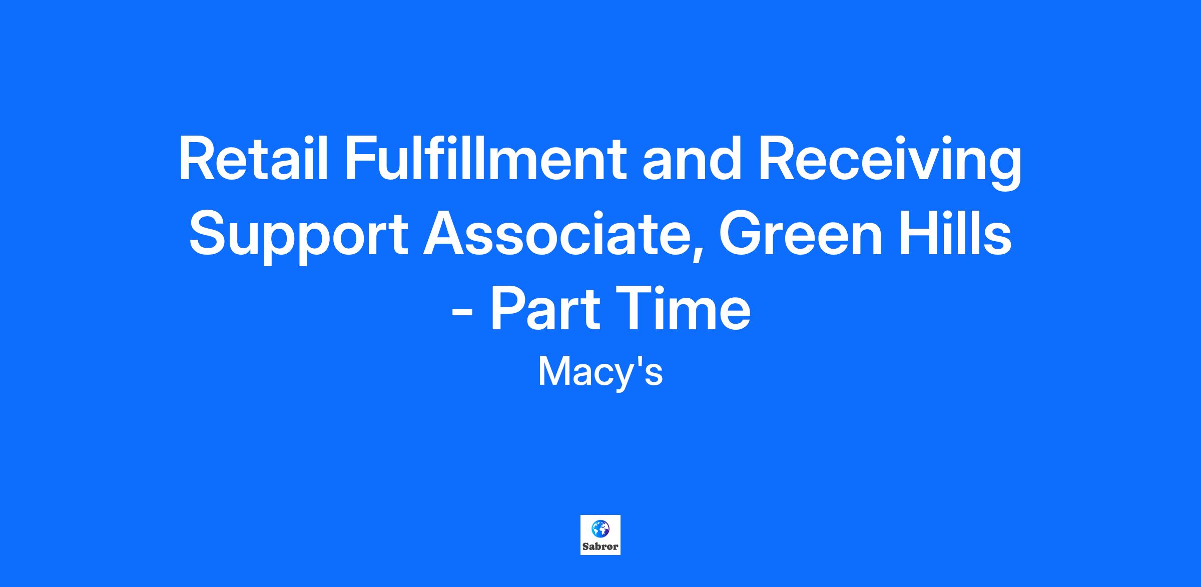 Retail Fulfillment and Receiving Support Associate, Green Hills - Part Time