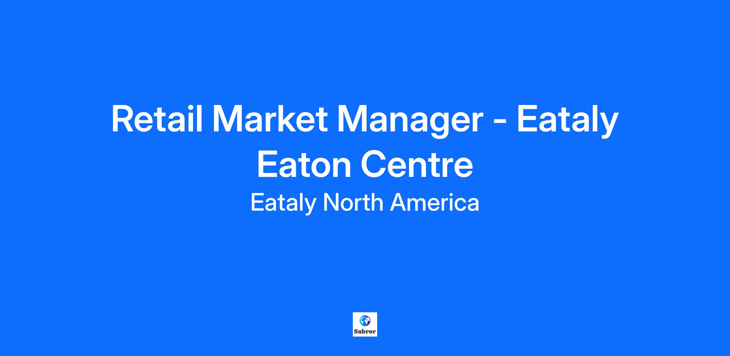 Retail Market Manager - Eataly Eaton Centre