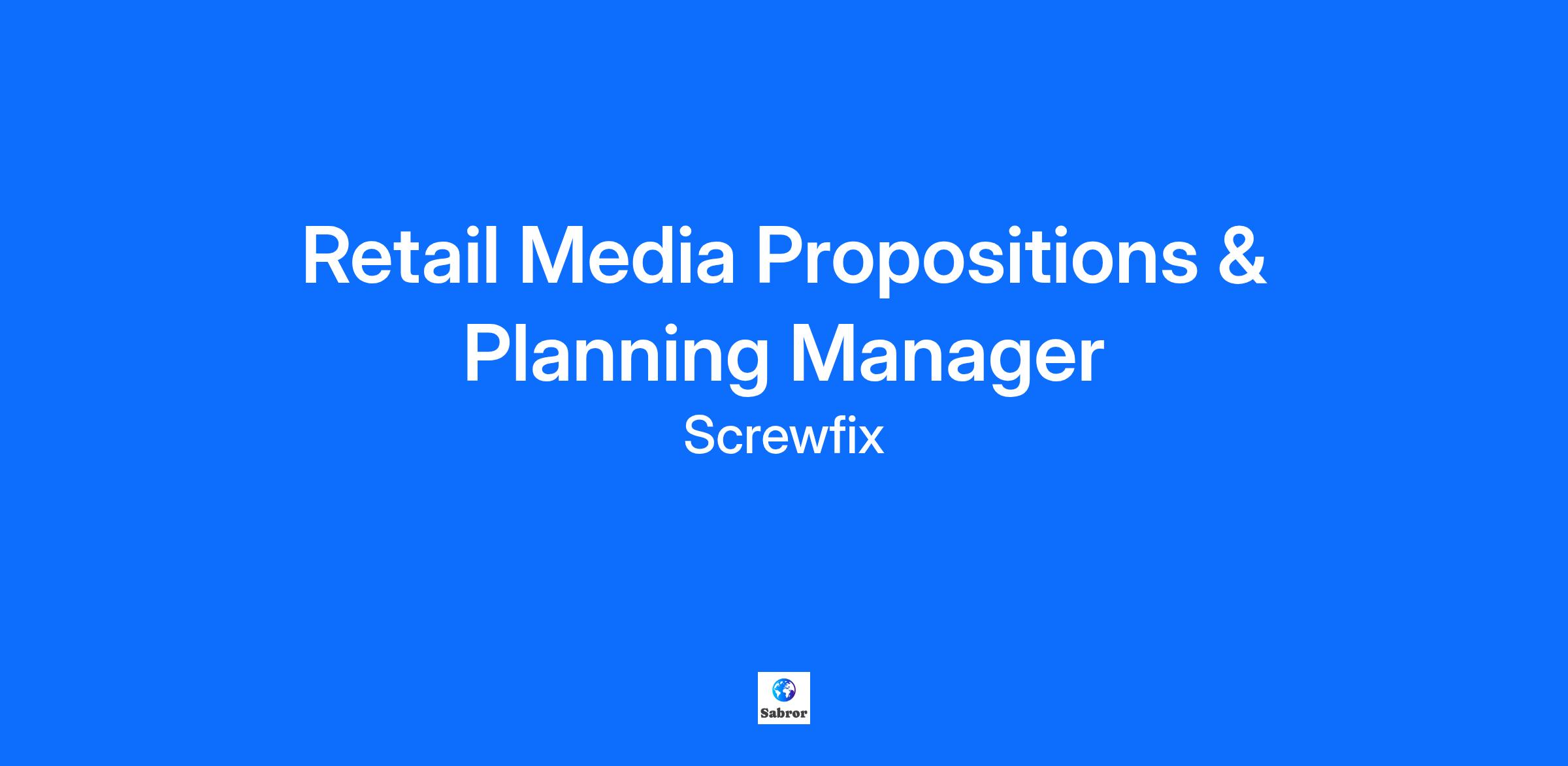 Overview Love retail, media, and building ideas that make brands stand out? We’re growing our Retail Media function at Screwfix, and we’re looking for someone who can shape the next phase of our media story. As Retail Media Propositions & Planning Manager, you’ll help define, manage, and grow the core media products we sell to our supplier partners. From creating new media opportunities across our website, app, stores, and data, to building best-in-class collateral for our sales teams, this is a role that blends creativity, commercial thinking, and collaboration. We are open to discussing flexible hybrid working patterns for this role - please reach out to discuss this in more detail. Our Head Office is based in Yeovil, Somerset What's in it for you? Discretionary annual bonus up to 20% 33 days' holiday (including bank holidays, 5 of which can be taken flexibly) Flexible hybrid working patters from our Yeovil, Somerset Head Office available Flexible start and end times around core working hours Buy More Holiday - eligible colleagues can boost their holiday allowance by up to one extra week EV Care Scheme in Partnership with Tusker - eligible colleagues can lease a brand-new or pre-loved electric vehicle Up to 14% employer pension contributions Life cover up to 4x your salary Health cash plan and discounted gym memberships (up to 25% savings) 20% discount at Screwfix and B&Q Responsibilities Build and evolve our Retail Media roadmap – defining new propositions across our owned channels (web/app, stores, data, offsite). Develop and refine media products that deliver value both to Screwfix and our vendor partners. Collaborate closely with our Partnerships (sales) teams to identify trends, shape our product strategy, and ensure we’re offering what the market needs. Own and maintain all media collateral, ensuring our teams have everything they need to sell with confidence. Work with tech partners like Citrus Ads and Brandswap to expand our media capability. Build strong internal relationships across Marketing, PR, and Digital teams to align on planning, communication, and execution. Produce case studies and external comms that tell our success stories and strengthen our presence in the market. Keep a close eye on industry benchmarks to ensure our pricing and proposition stay competitive. Qualifications Network establishment; this role requires strong internal and external stakeholder engagement to align on media propositions and ensure SLA’s are defined and maintained Previous experience in a similar or adjacent role in a Retail Media network is highly desirable A keen understanding in how a media proposition’s value is in its’ ability to work for both us as a retailer and the value a vendor perceives it to have – all propositions must be built with our media customer in mind Understanding of the ad technology space within Retail Media Highly organised, able to juggle the various demands of stakeholders both internal and external Confident working with multiple stakeholders and tech partners to bring ideas to life. Commercially minded – you understand how to create value for both retailer and vendor. At Screwfix, Your Wellbeing Comes First: Financial wellbeing Wagestream access to track earnings and save Access to the Kingfisher Share Scheme Colleague support fund Exclusive offers and discounts via our Hapi app Cycle-to-work scheme and savings on bikes Every day benefits Career progression and development programmes Coaching and mentoring to help you thrive Access to wellbeing resourcing including PepTalk Support networks available If you’re ready to help shape the next chapter of Retail Media at Screwfix, we’d love to hear from you. Apply now and help us build media propositions that really deliver. We believe in equity for all. Please let us know at careers@screwfix.com if you need any additional support or adjustments when it comes to your application. NO AGENCIES PLEASE #LI-Hybrid