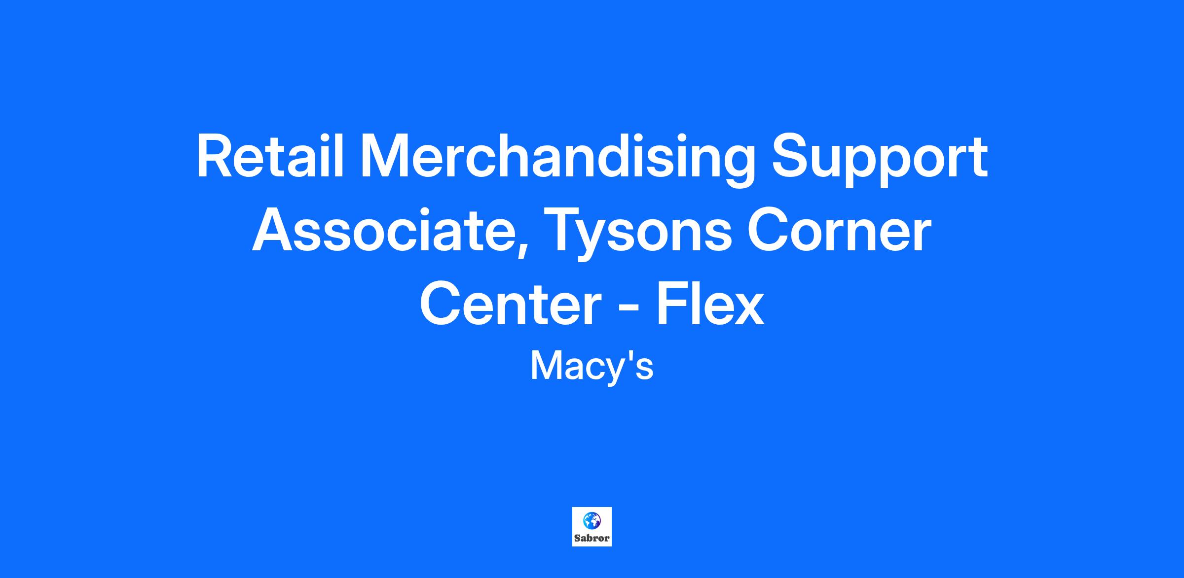 Retail Merchandising Support Associate, Tysons Corner Center - Flex