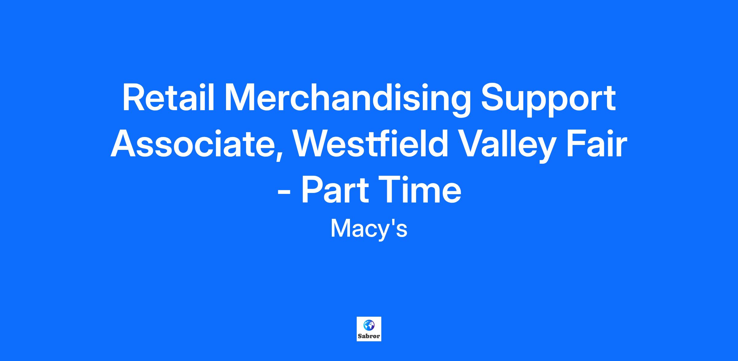 Retail Merchandising Support Associate, Westfield Valley Fair - Part Time