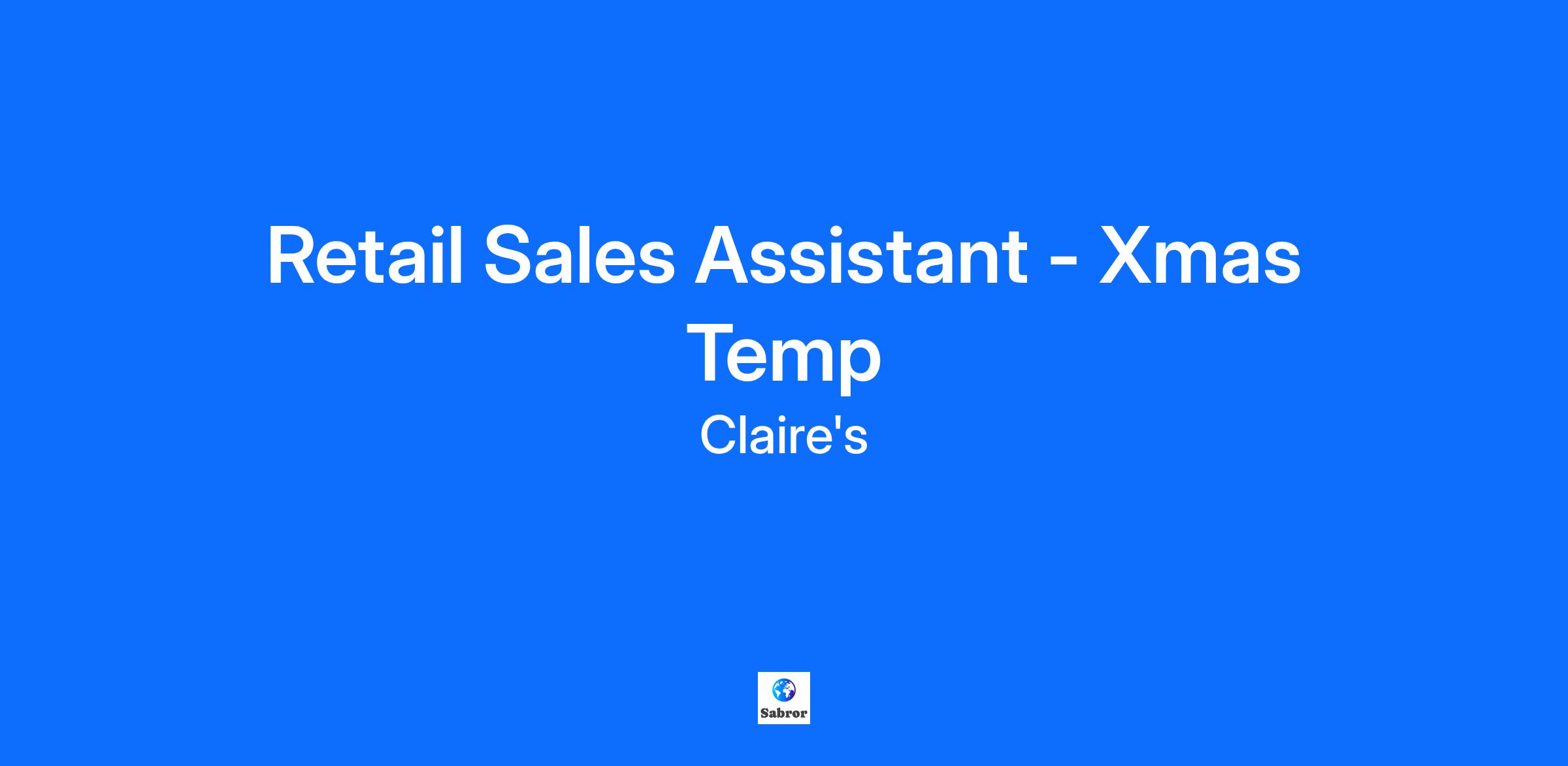 Retail Sales Assistant - Xmas Temp