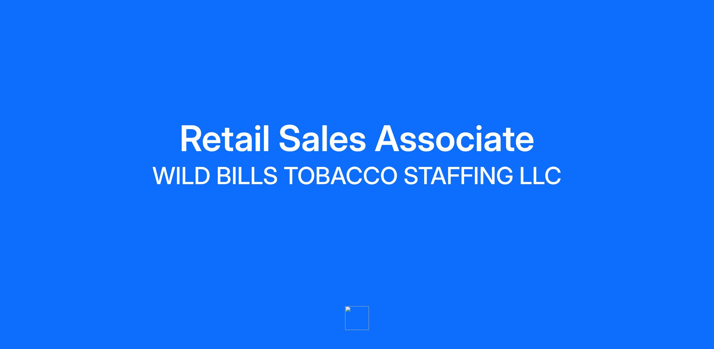 Description Are you looking for a fun and relaxed environment? Do you want a career that will keep you motivated and excited to be at work? If you answered yes to these questions, Wild Bill’s Tobacco is the right place for you to apply! With over 200 locations and over 900 employees, Wild Bill's Tobacco strongly believes in promoting from within. As the 2nd largest tobacco and vape chain in the nation, Wild Bill's wants to offer you a career, not a job. Responsibilities: Provide excellent customer service to customers visiting the store, including greeting, answering phones, and assessing their needs in a positive manner. Answers questions and resolves customer inquiries and concerns. Create relationships with customers in order to suggest products. Meet or exceed sales goals. Participate in opportunities to gain product knowledge in order to be the expert. Participate in marketing efforts to solicit new business by promoting the brand inside and outside the store/retail location. Assist with all functions within a retail store in compliance with company policies and procedures. Ensure a clean, well-stocked store for customers. Follow all Company policies and procedures. Ability to travel within a 15-mile radius from home store for shift coverage. Work with store management in opening, closing, and operating the retail facility, including but not limited to cash handling, inventory count and deposits as governed by operations control standards. Complete accurate paperwork and transactions according to company policies and procedures. Ensure maintenance of store appearance, back room, restrooms, and individual work area. Build customers’ confidence by making their experience comfortable and simple while meeting their needs. Assist in other tasks, duties, or projects as assigned by management. Open and close the store which includes locking doors and setting the alarm. Must be able to work shifts ranging from 4 to 12 hours standing on the sales floor. Requirements Qualifications: Completion of high school or equivalent Must be at least 21 years old Experience in retail environments and customer service Ability to lift up to 50 lbs. Professional, energetic and positive attitude. Excellent written and verbal/interpersonal communications skills. Flexible scheduling availability. Benefits: Health, Dental, Vision and Life Insurance (Full Time Only after 60 days of employment) Flexible work schedule Discounts on store products Development and Growth Opportunities Merit increases for full-time employees bi-annually Spiffs (commission) Recognition program