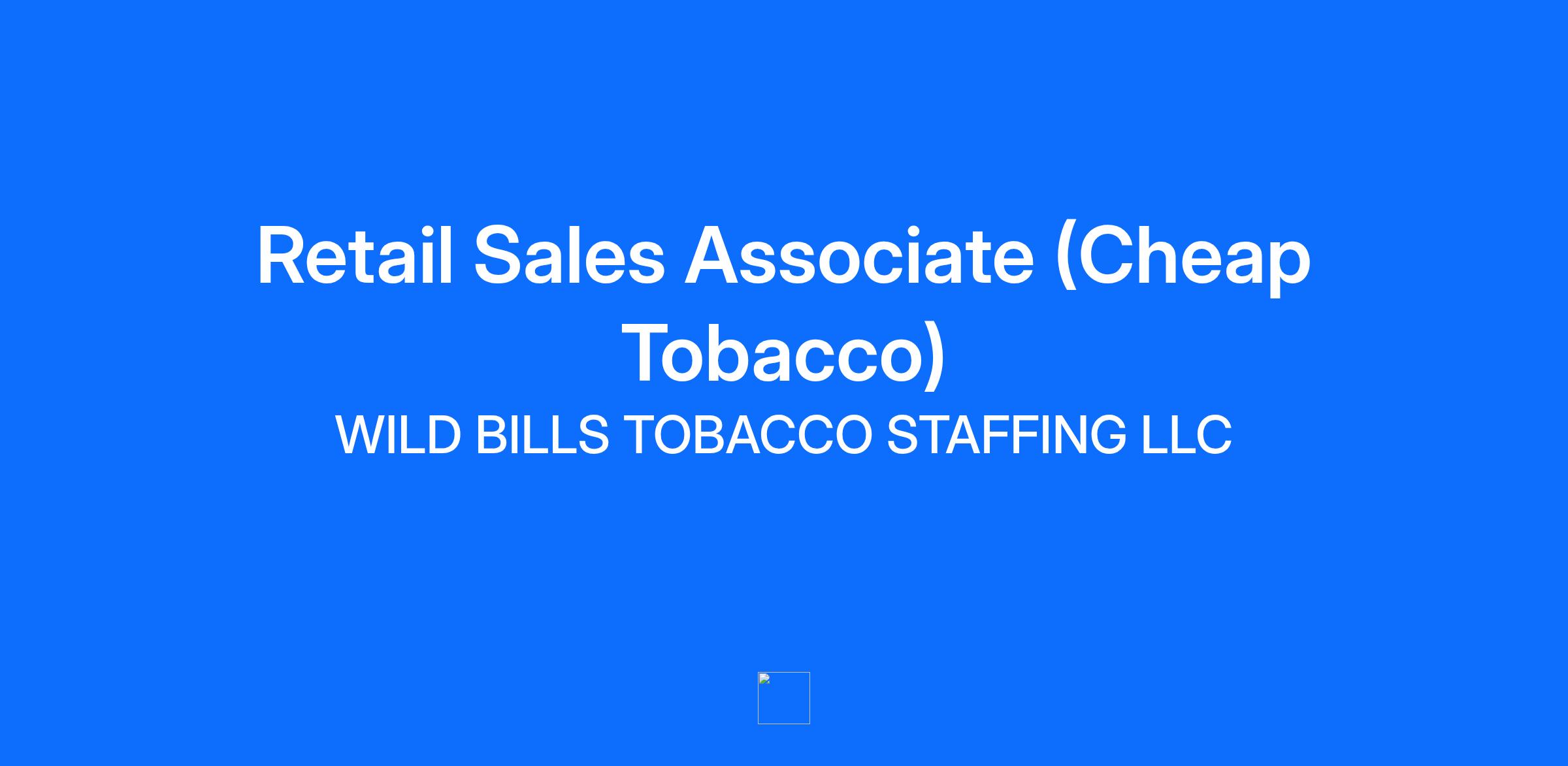 Description Are you looking for a fun and relaxed environment? Do you want a career that will keep you motivated and excited to be at work? If you answered yes to these questions, Wild Bill’s Tobacco is the right place for you to apply! With over 200 locations and over 900 employees, Wild Bill's Tobacco strongly believes in promoting from within. As the 2nd largest tobacco and vape chain in the nation, Wild Bill's wants to offer you a career, not a job. Responsibilities: Provide excellent customer service to customers visiting the store, including greeting, answering phones, and assessing their needs in a positive manner. Answers questions and resolves customer inquiries and concerns. Create relationships with customers in order to suggest products. Meet or exceed sales goals. Participate in opportunities to gain product knowledge in order to be the expert. Participate in marketing efforts to solicit new business by promoting the brand inside and outside the store/retail location. Assist with all functions within a retail store in compliance with company policies and procedures. Ensure a clean, well-stocked store for customers. Follow all Company policies and procedures. Ability to travel within a 15-mile radius from home store for shift coverage. Work with store management in opening, closing, and operating the retail facility, including but not limited to cash handling, inventory count and deposits as governed by operations control standards. Complete accurate paperwork and transactions according to company policies and procedures. Ensure maintenance of store appearance, back room, restrooms, and individual work area. Build customers’ confidence by making their experience comfortable and simple while meeting their needs. Assist in other tasks, duties, or projects as assigned by management. Open and close the store which includes locking doors and setting the alarm. Must be able to work shifts ranging from 4 to 12 hours standing on the sales floor. Requirements Qualifications: Completion of high school or equivalent Must be at least 21 years old Experience in retail environments and customer service Ability to lift up to 50 lbs. Professional, energetic and positive attitude. Excellent written and verbal/interpersonal communications skills. Flexible scheduling availability. Benefits: Health, Dental, Vision and Life Insurance (Full Time Only after 60 days of employment) Flexible work schedule Discounts on store products Development and Growth Opportunities Merit increases for full-time employees bi-annually Spiffs (commission) Recognition program