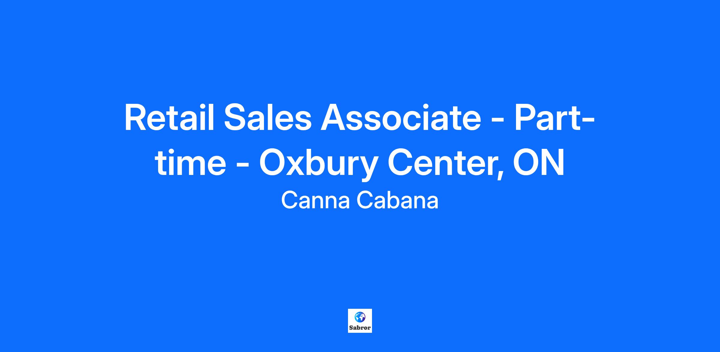 Retail Sales Associate - Part-time - Oxbury Center, ON
