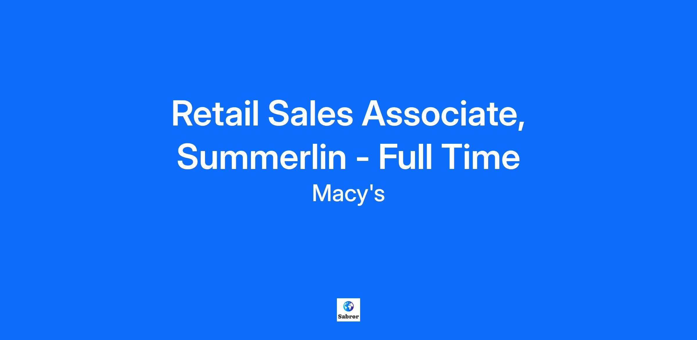This job description is not all-inclusive and may not apply to colleagues covered by a collective bargaining agreement. Macy's Inc. reserves the right to amend this job description at any time. Macy's Inc. is an Equal Opportunity Employer, committed to a diverse and inclusive work environment.