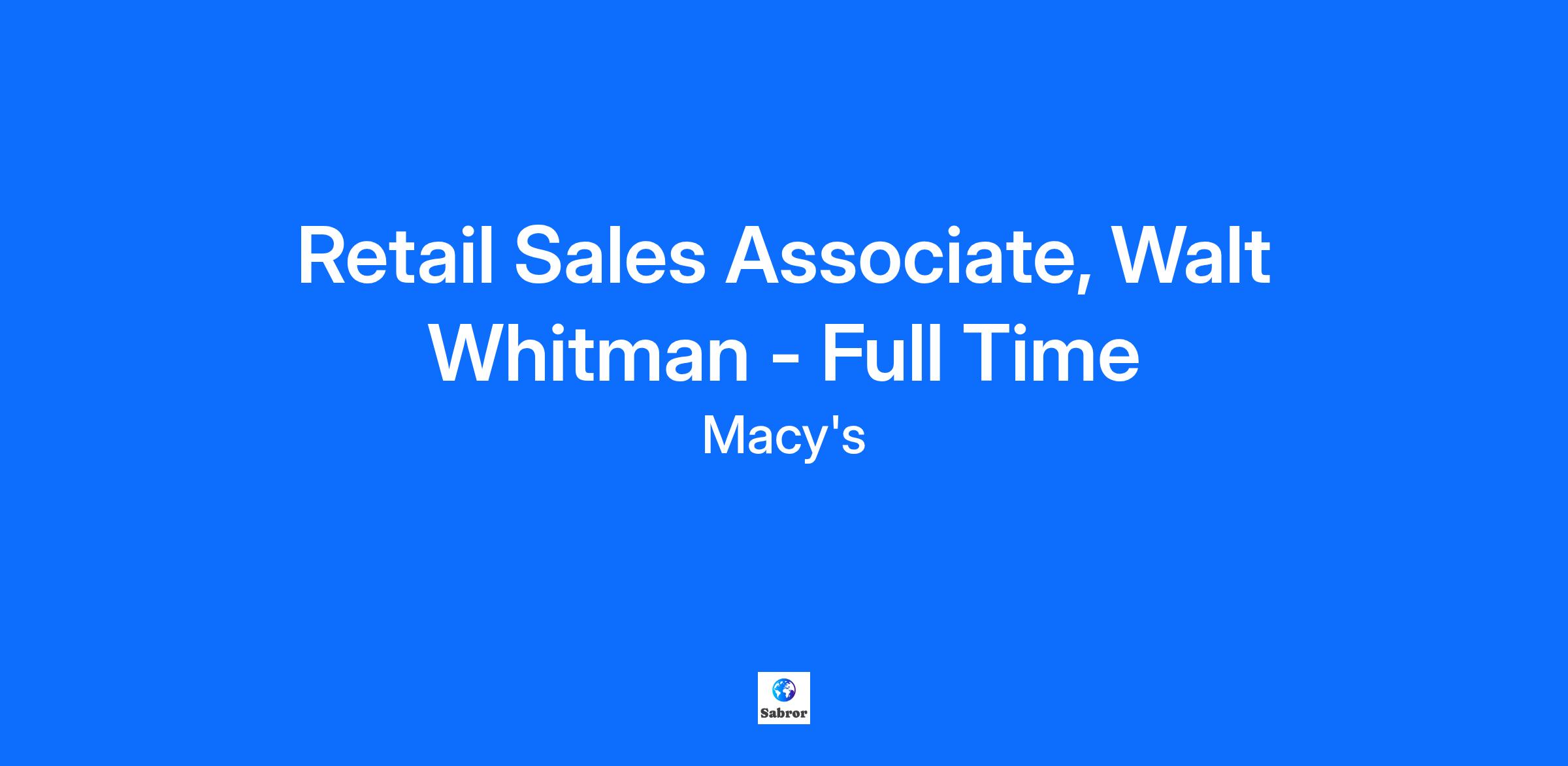 This job description is not all-inclusive and may not apply to colleagues covered by a collective bargaining agreement. Macy's Inc. reserves the right to amend this job description at any time. Macy's Inc. is an Equal Opportunity Employer, committed to a diverse and inclusive work environment.