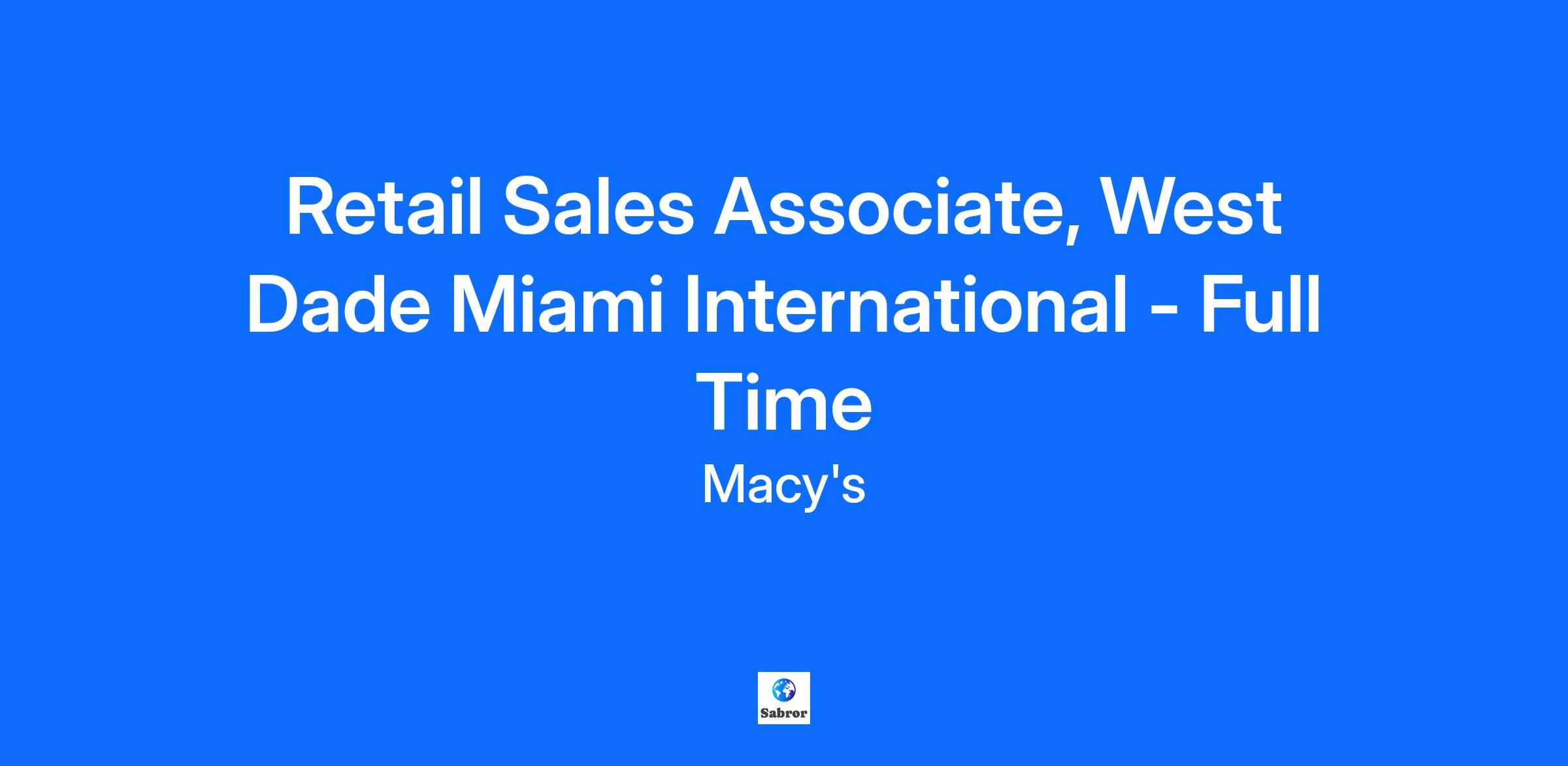 Retail Sales Associate, West Dade Miami International - Full Time