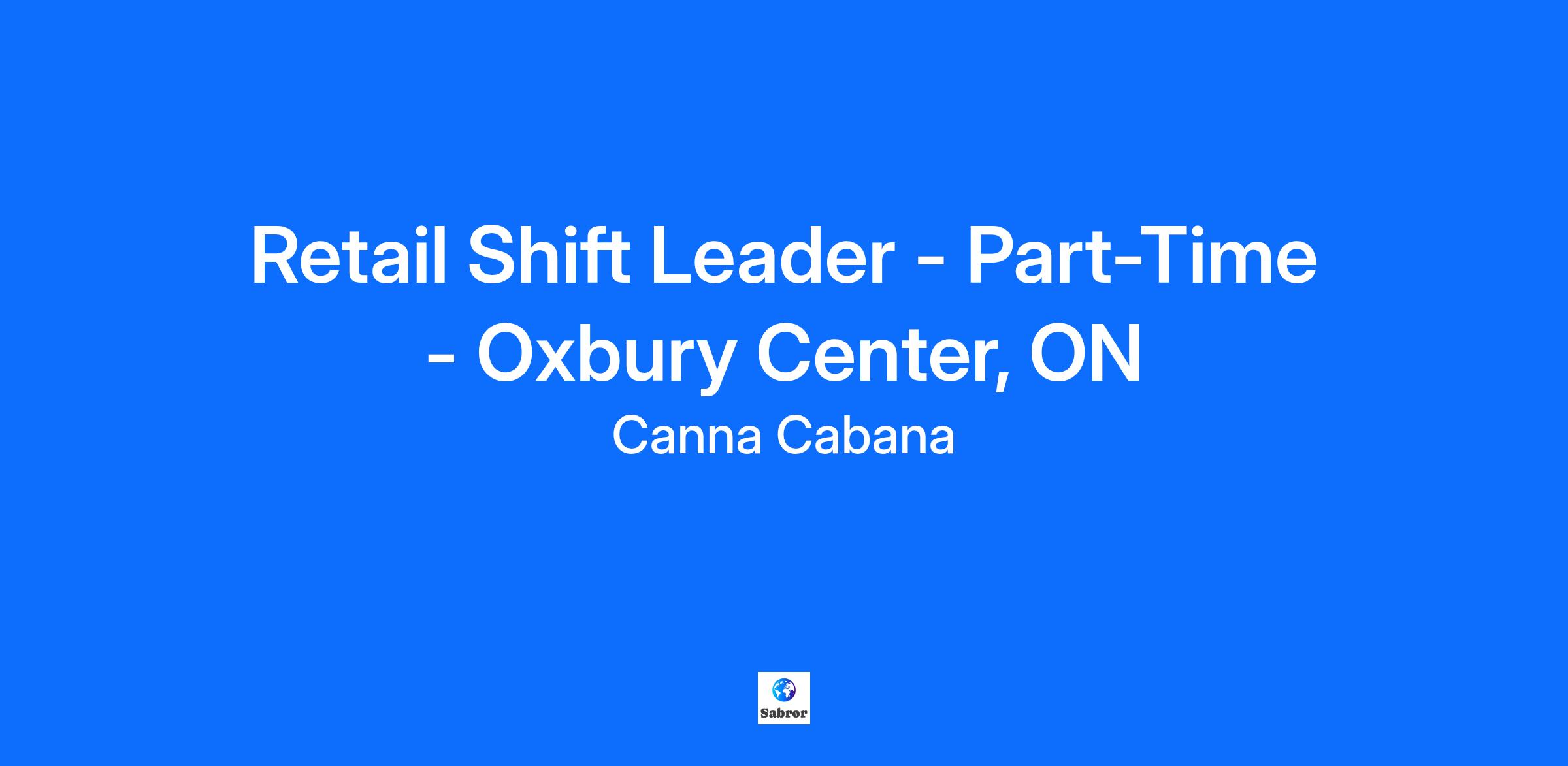 Retail Shift Leader - Part-Time - Oxbury Center, ON